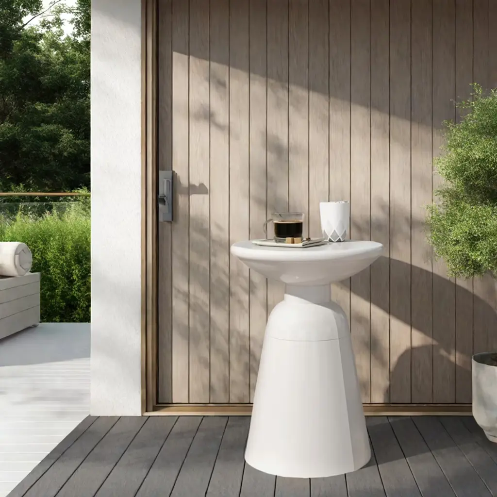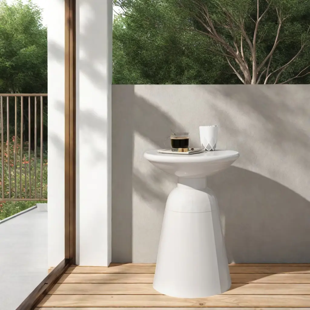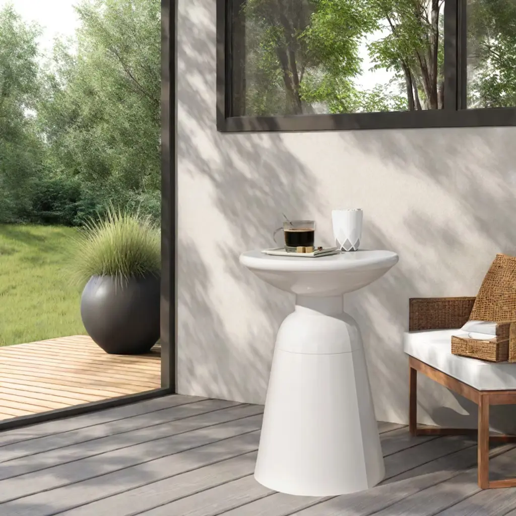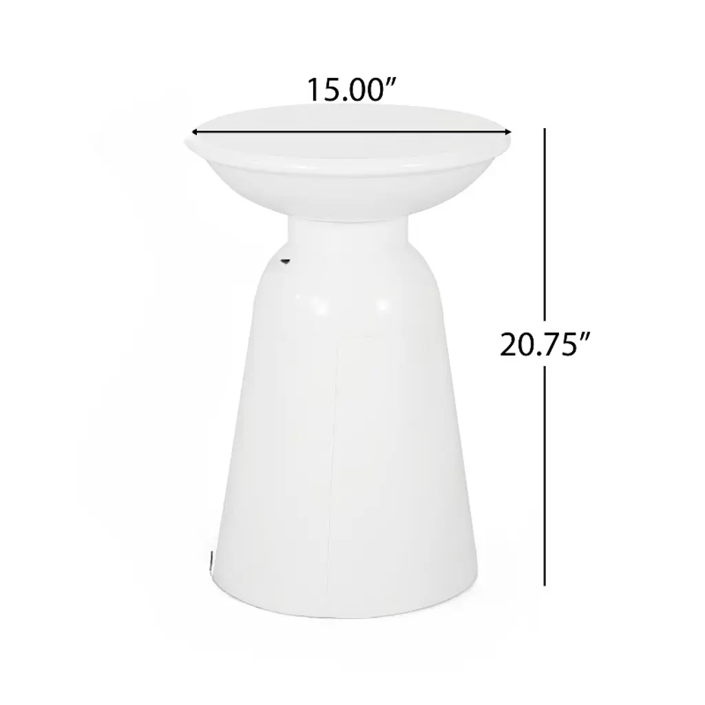 Naysaye Outdoor Flared Shaped End Table, Metal Side Table With Round Base For Home Lawn Garden Patio, White, 15"*15"*20.75"