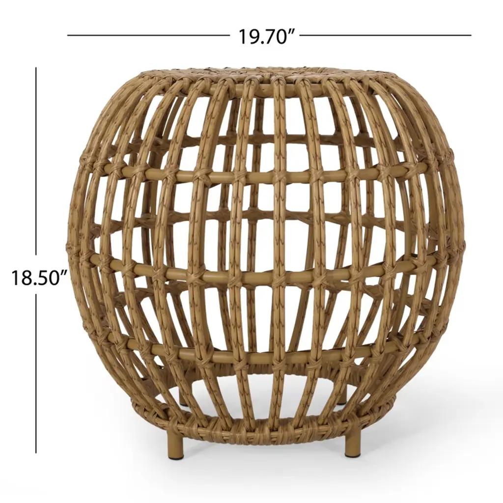 NAYSAYE Patio End Tables Boho Side Table with Faux Rattan Weave brings a carefree touch to your decor. Handcrafted by skilled artisans, each table features unique natural variations. The durable polyethylene rattan weave ensures lasting strength while adding a versatile look to any space. Fully assembled and ready for use, this table offers hassle-free placement. Its sleek design and lightweight structure make it the perfect fit for both indoor and outdoor settings.