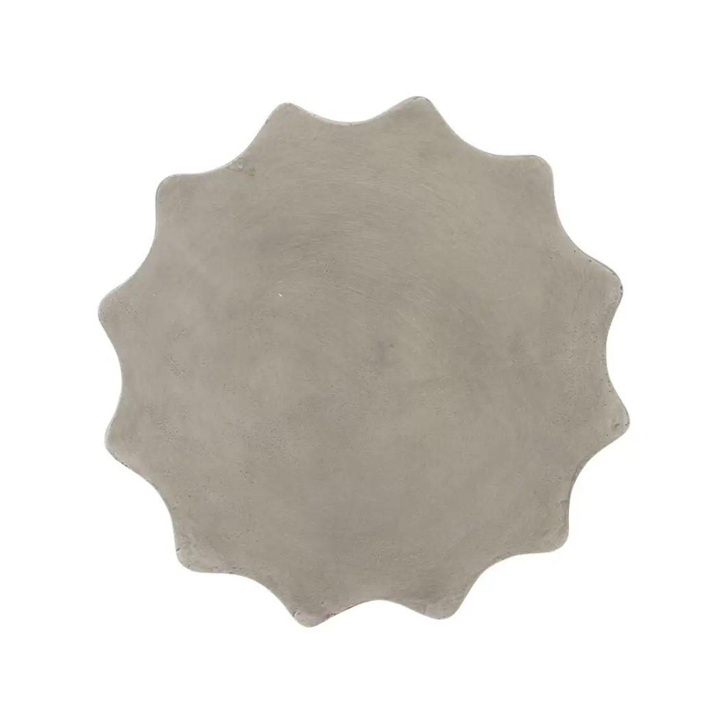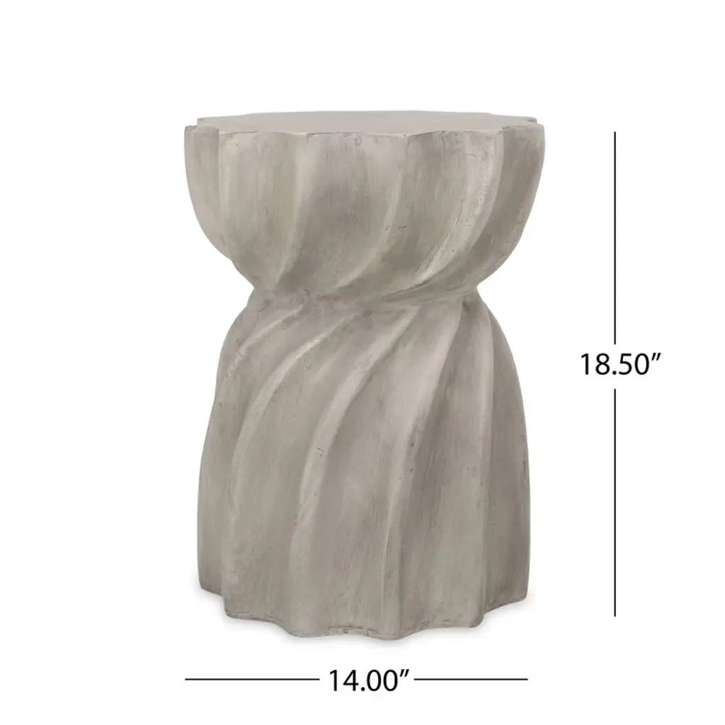 NAYSAYE Patio End Tables Canis side table brings bold style to your outdoor space with its striking sunburst top and hourglass shape. Crafted from durable lightweight concrete, this table combines strength with elegance. Perfect for holding snacks, drinks, or accessories, it adds both functionality and beauty to your setting. Its contemporary design enhances your outdoor decor, creating a sophisticated and inviting atmosphere for gatherings.