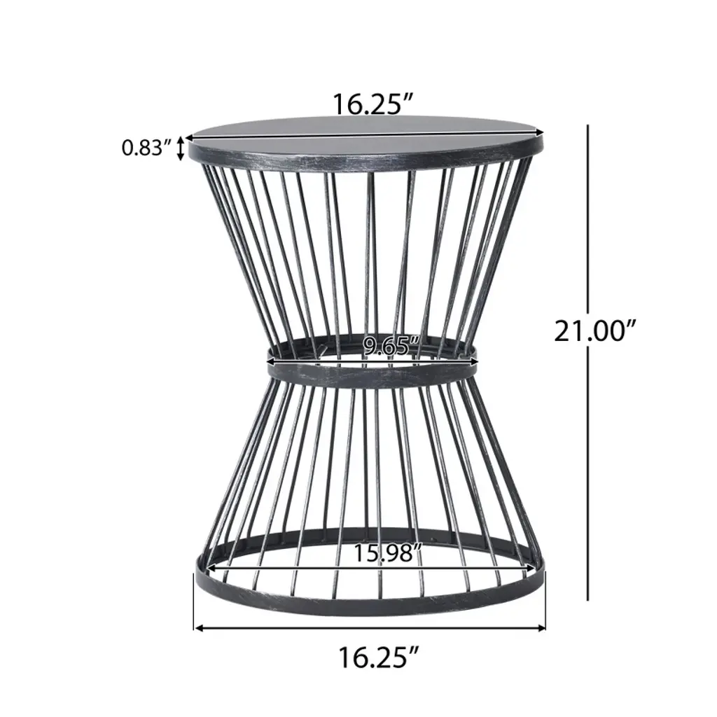 NAYSAYE Patio End Tables Lassen side table brings artistic charm to your outdoor space with its sleek hourglass design. Perfect for holding drinks or snacks, this table adds a modern touch to patios or gardens. Its open cage frame creates a unique visual appeal while offering functional versatility. Compact and stylish, it fits seamlessly into smaller spaces, making it an ideal accent piece for creating a cozy and welcoming outdoor atmosphere.