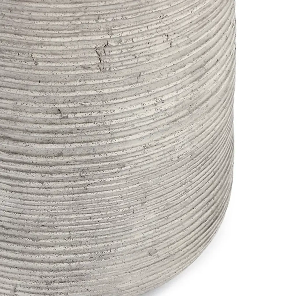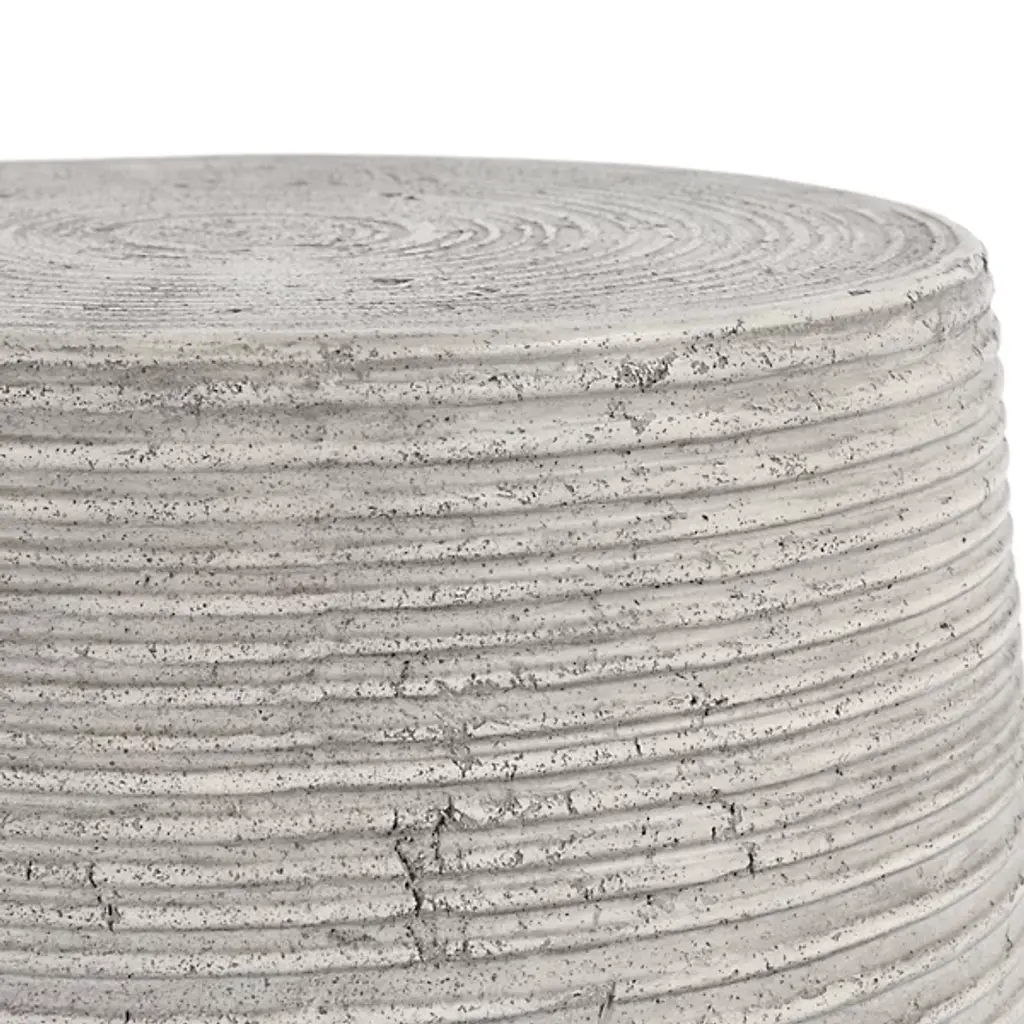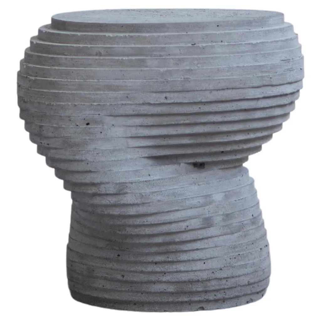 The Nellie Outdoor End Table from Classic Home expresses contemporary simplicity with mid-century modern flair. Each table is molded from durable glass fiber-reinforced concrete, and this round table rises gracefully from a circular base, with unique grooves along the sides and top that add texture and visual appeal. Its simple design makes it a perfect addition to any outdoor setting, able to endure the elements and bring practicality and style to your patio or garden, creating a refined outdoor retreat.