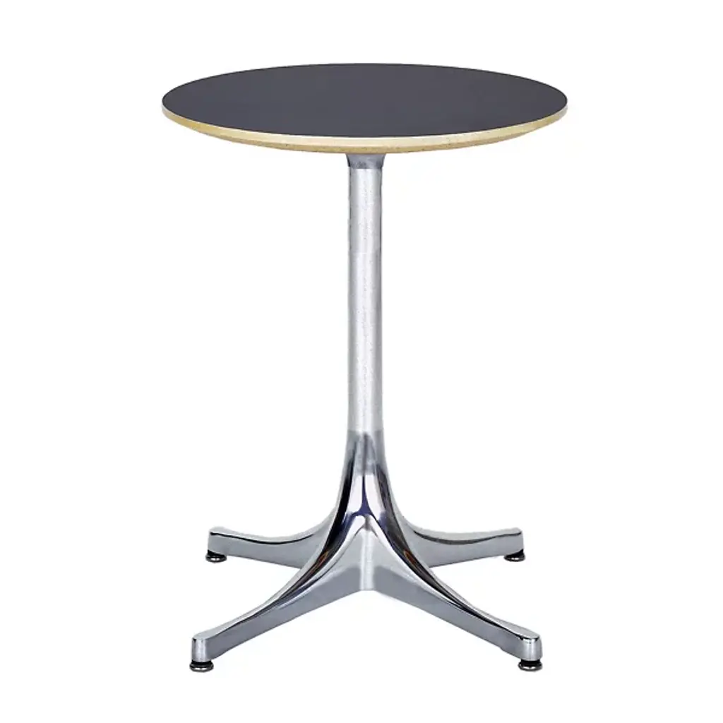 Add a stylish accent to your indoor living spaces with the Nelson End Table from Herman Miller. Emblematic of the clean lines and human-focused balance sought by designer George Nelson, this 1954 design starts with a four-legged metal base that swoops upward to a single column, perfectly securing a bevel-edged laminate top large enough for in a variety of finishes. The end table is simple enough to blend in with a variety of décor styles while still being eye-catching enough to remind you where you set down your tea, phone, or book atop it.