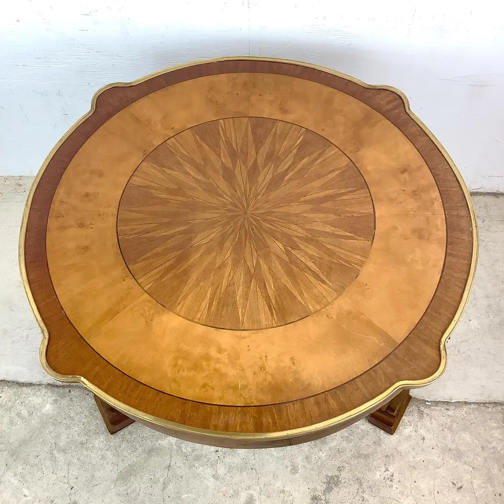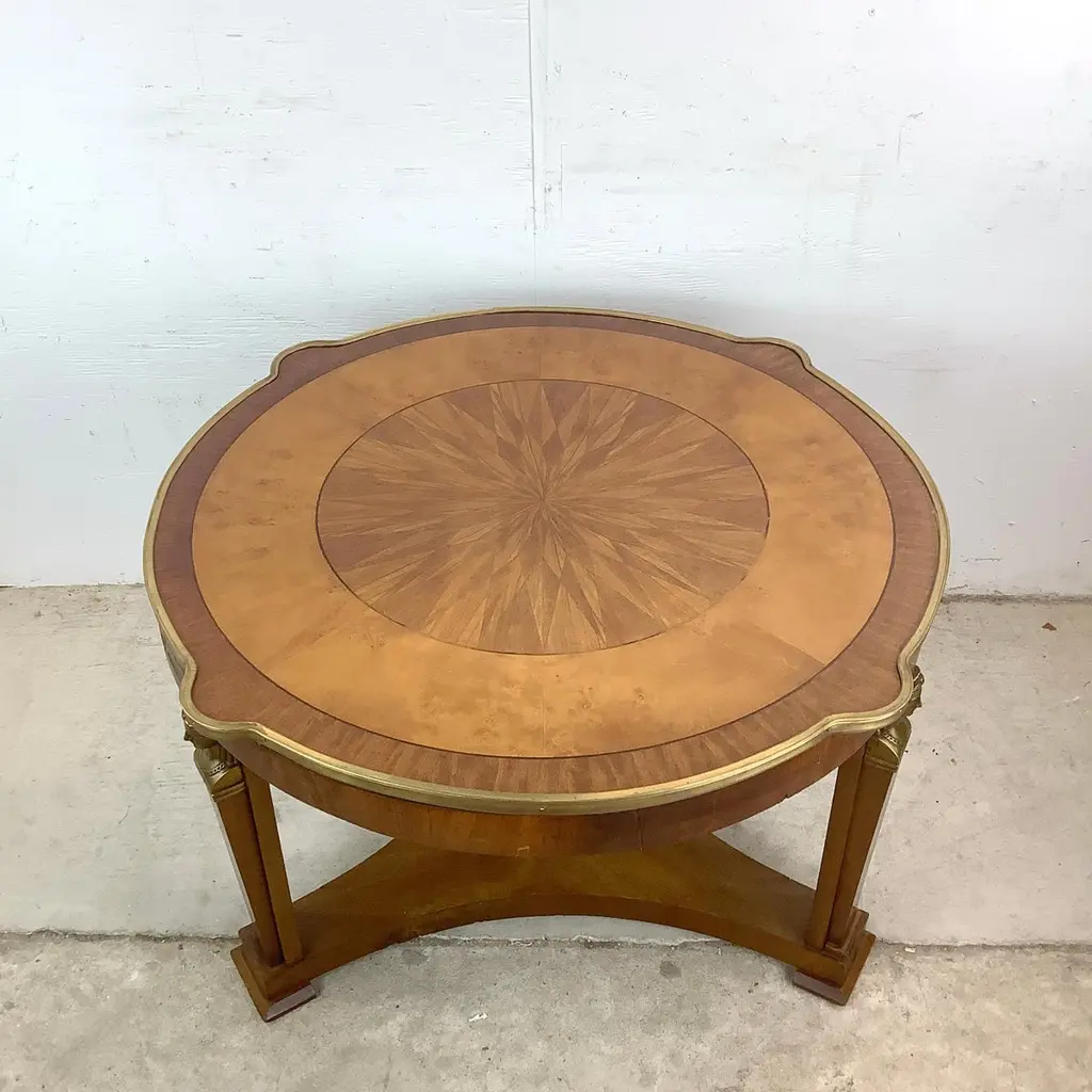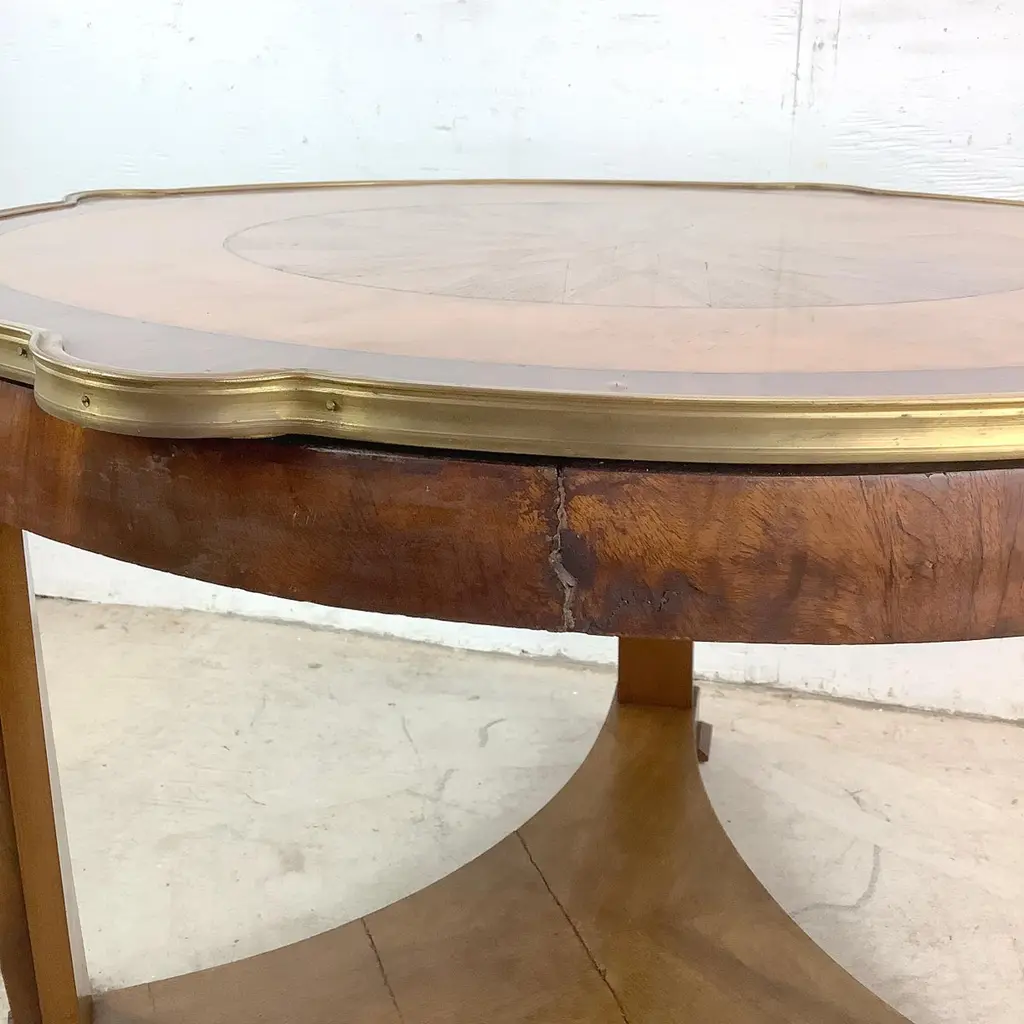 Evoking the stately charm of 19th-century Europe, this Biedermeier gueridon table captures the essence of Neoclassical and Empire design. Its circular top is poised over a single pedestal base, culminating in three sturdy feet for perfect balance. A handsome vintage wood finish unites all elements in a rich and cohesive presentation.Ormolu trim brings in a refined golden detail that subtly elevates the entire design. These brass accents are a hallmark of Empire and Biedermeier furnishings, offering a tasteful nod to antique European decor. The result is a table that feels both grounded and elegant.True to Biedermeier principles, this piece embraces clean lines and a streamlined form. It offers an understated grandeur that works well in settings where form and function meet. Its strength lies in the clarity of its structure and the quality of its materials.Sized to fit comfortably in a wide range of spaces, this gueridon table is as practical as it is stylish. It works wonderfully in entryways, between armchairs, or as a decorative accent table under a mirror or painting.The aged wood tone has a soft, inviting luster that only comes from decades of careful wear. Its finish enhances the tactile richness of the piece, making it visually warm and pleasing to the touch.For admirers of antique European furniture, this table embodies the quiet luxury and enduring relevance of Biedermeier design. It’s a piece that reflects thoughtful craftsmanship and timeless aesthetic ideals.Whether styled with antique books or a modern ceramic vase, this gueridon table adapts gracefully, showcasing a rare mix of historical lineage and everyday beauty.Dimensions: 37w 37d 23hCondition: age appropriate wear, vintage finish worn, scuffs/scratches, edge wear, discoloration, see photos.