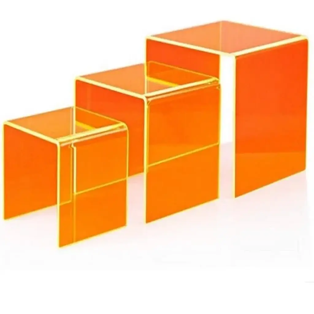 Custom Color Lucite Nesting Tables, Set of 3 Our exclusive Custom Color Nesting Tables are a chic uptake on the standard clear waterfall acrylic nesting tables. In soft pastel shaded Lucite, these waterfall nesting tables add style and function, giving you 3 tables in 1. Sold as set of 3 Color Lucite 1/4” (8 mm) thick Dimensions: Small: 13.75” w x 13” d x 12” h Medium: 15” w x 13” d x 14” h Large: 16” w x 13” d x 16” h