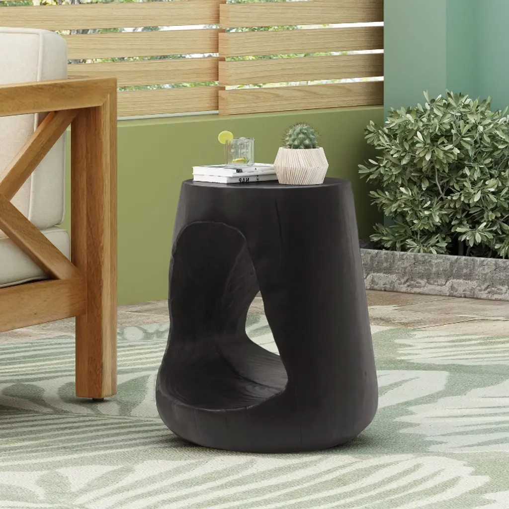Elevate your outdoor space with the Neptune Outdoor Side Table from Bernhardt. Inspired by Moroccan architecture and featuring a modern take on classic drum shapes, this table is both stylish and functional. Crafted with glass-reinforced concrete with a woodgrain texture, it boasts cutout legs with high arches and a softly concaved top, perfect for holding cocktails, plants, or any outdoor essentials. Highlights