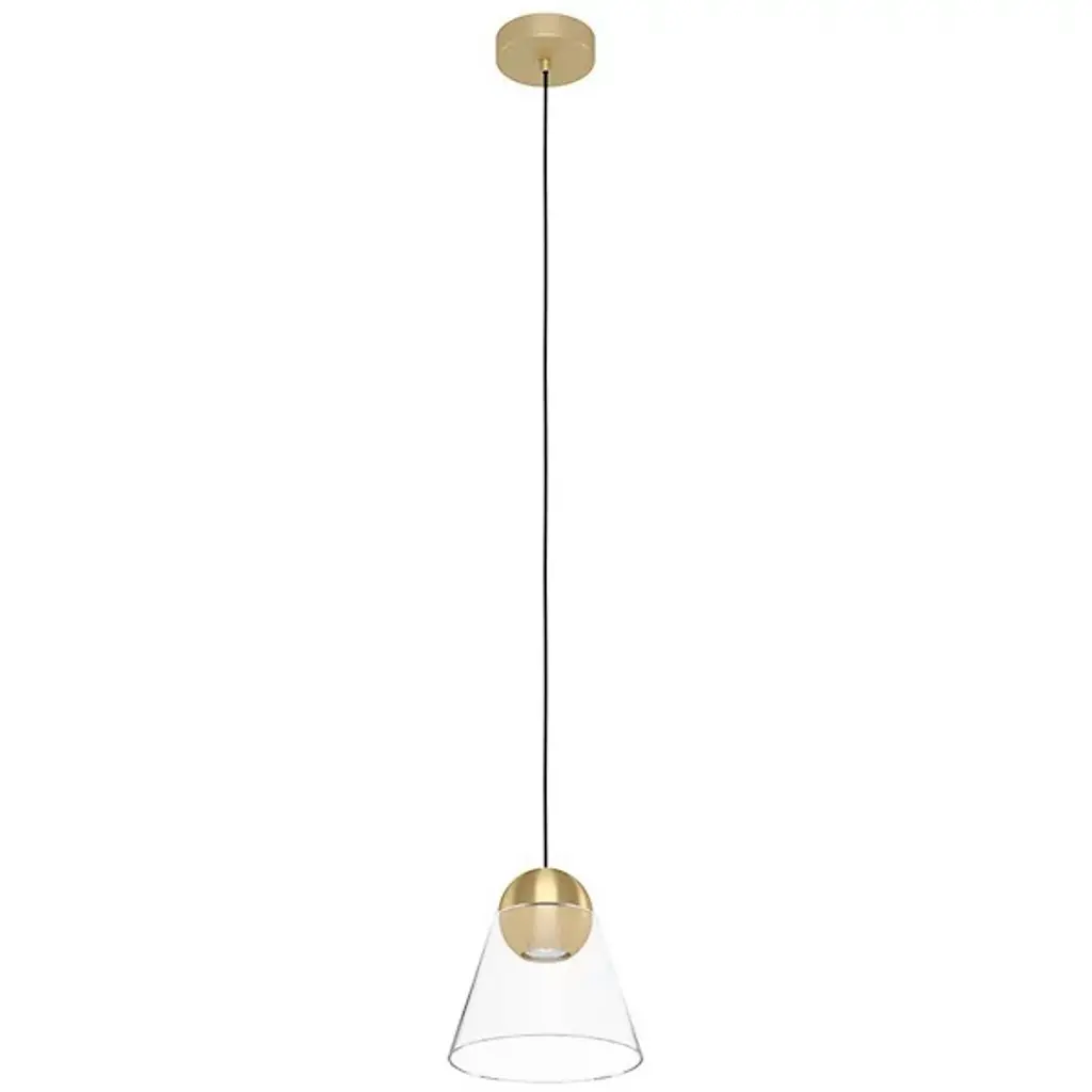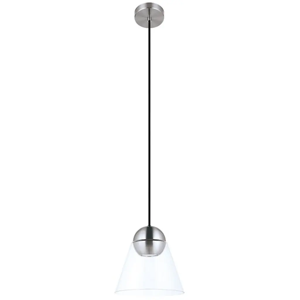Pendant lighting that shows off an elegant juxtaposition of geometric shapes. The Nessya Mini Pendant by Huxe has a conical glass shade that shows off the steel orb at the center and gives the overall design a more sizable but still lightweight presence. The bulb housed in the orb shines down directly, creating a bright beam of downlight that’s ideal for illuminating a kitchen island countertop, bedside table or workspace surface.