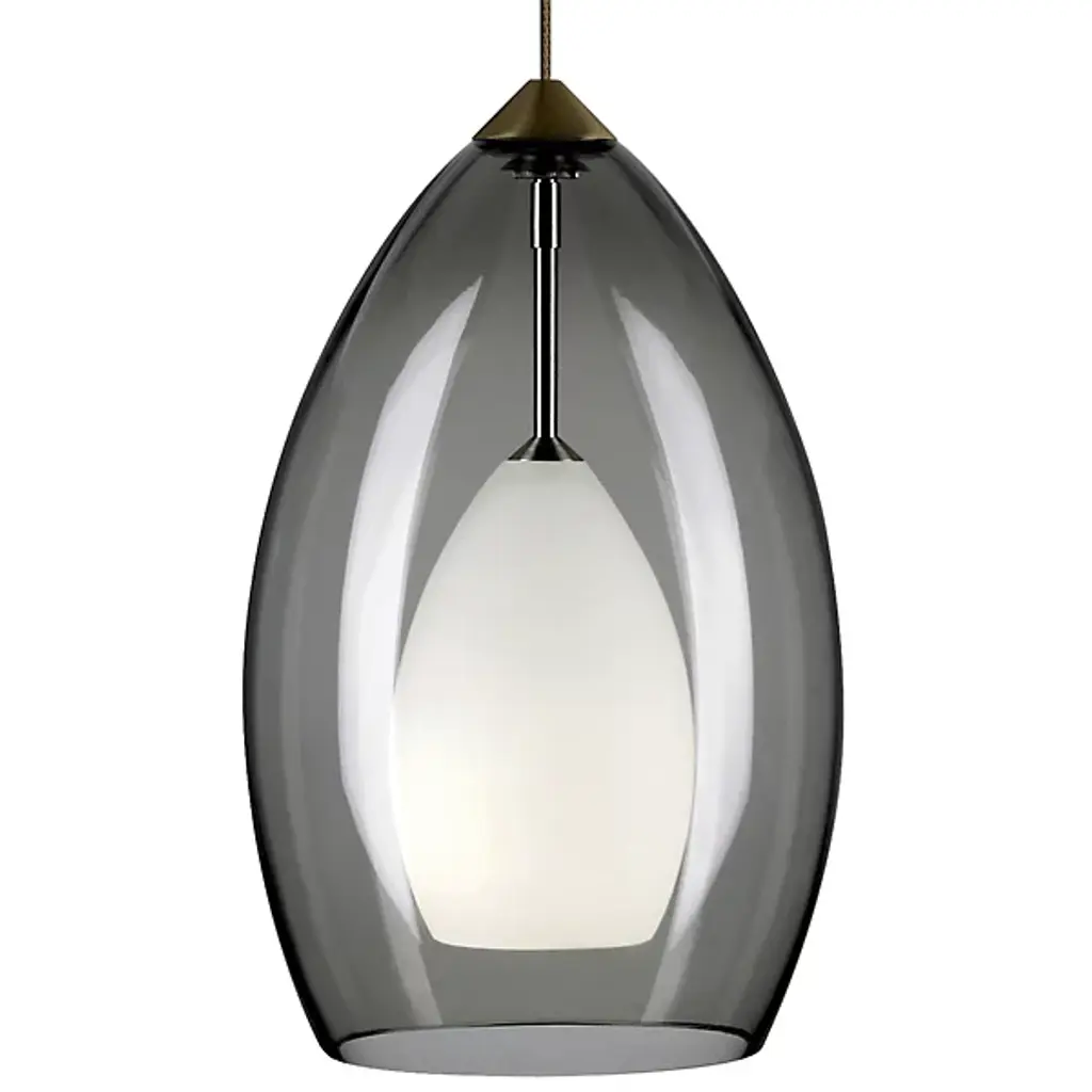 The Nest LED Pendant from Boyd Lighting distills Jake Oliveira's glass expertise into a single suspended form. The pendant suspends a grooved glass insert within an outer glass shell, producing nuanced light distribution through material interplay. Light emanates in all directions yet changes character as it passes through different glass densities, and the brass connection points provide necessary structural support. This suspension works beautifully in entryways, above bedside tables, or grouped in multiples over kitchen counters.