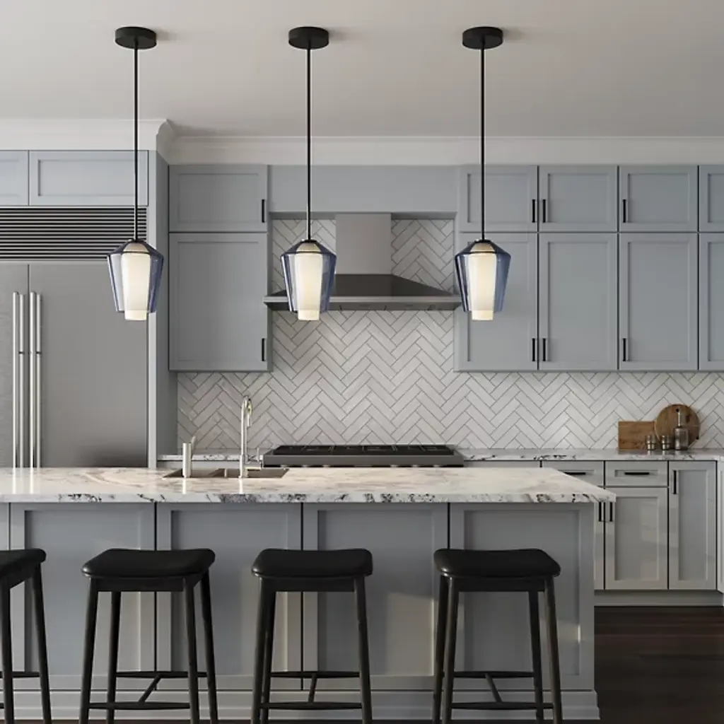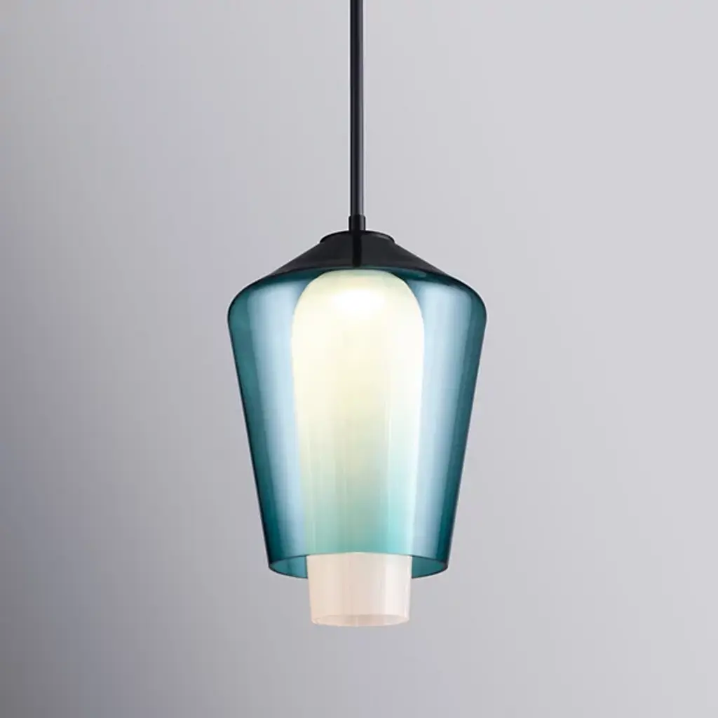 The Nest LED Pendant from Boyd Lighting distills Jake Oliveira's glass expertise into a single suspended form. The pendant suspends a grooved glass insert within an outer glass shell, producing nuanced light distribution through material interplay. Light emanates in all directions yet changes character as it passes through different glass densities, and the brass connection points provide necessary structural support. This suspension works beautifully in entryways, above bedside tables, or grouped in multiples over kitchen counters.