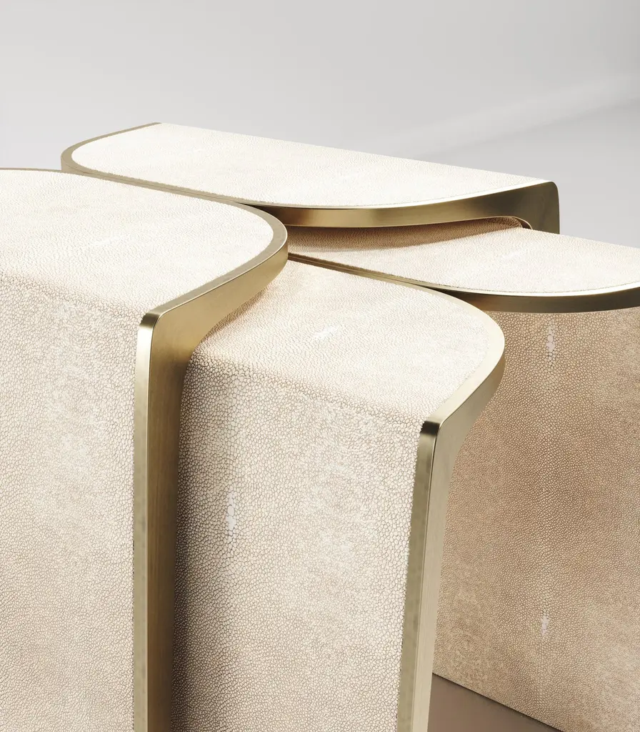 Nesting Shagreen Side Tables With Bronze Patina Brass Details By Kifu Paris