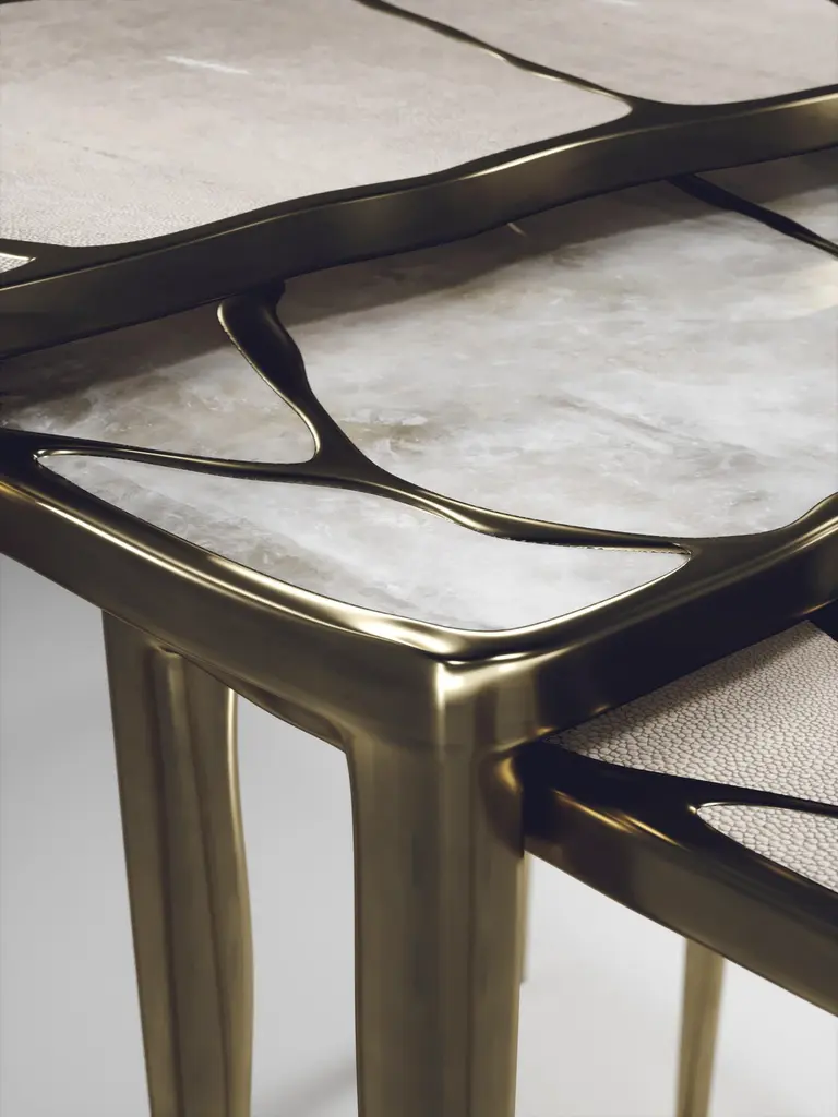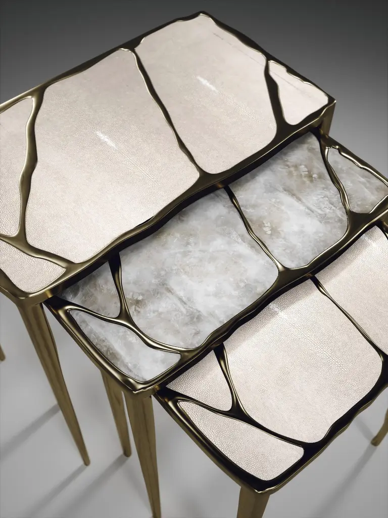 Nesting Side Tables In Shagreen, Quartz And Bronze-Patina Brass By R&y Augousti