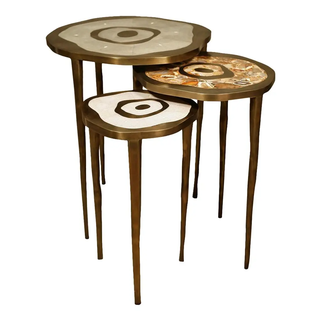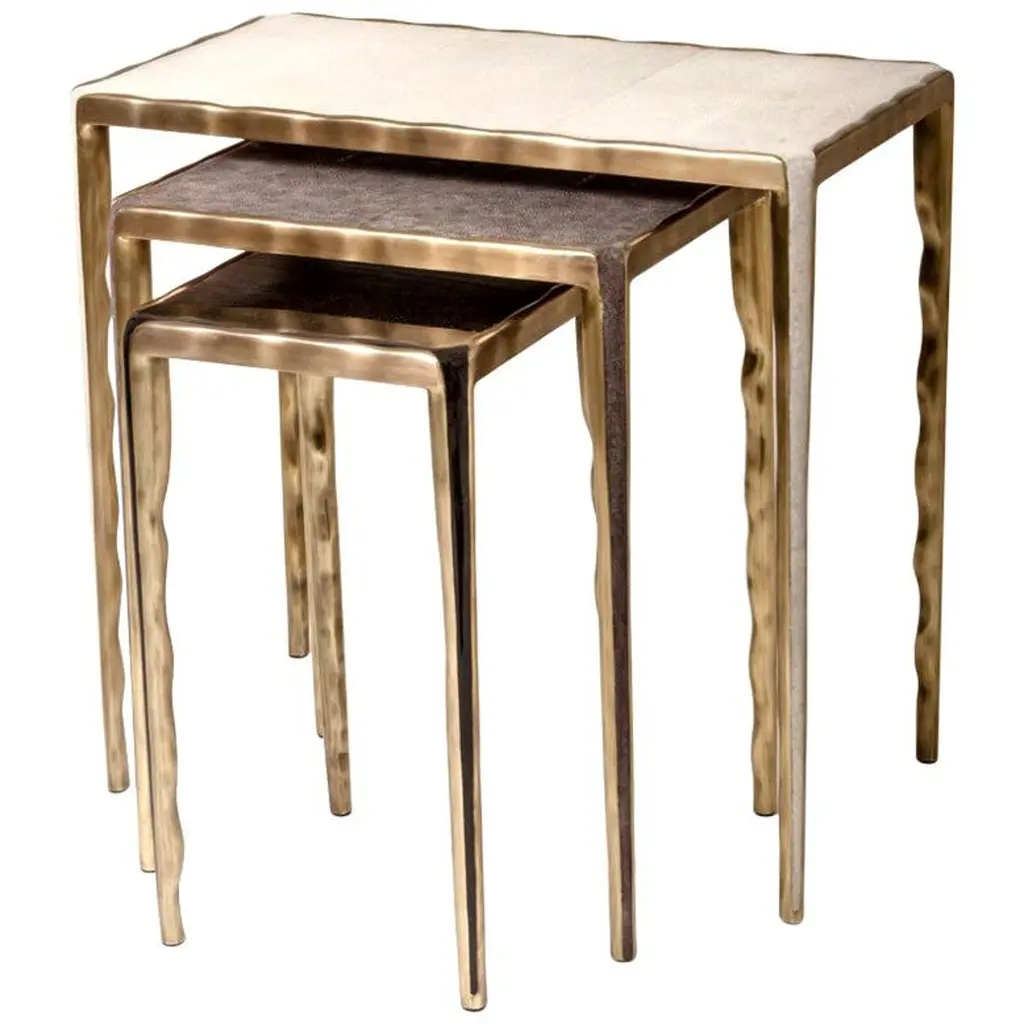 Nesting Side Tables In Shagreen, Quartz And Bronze-Patina Brass By R&y Augousti