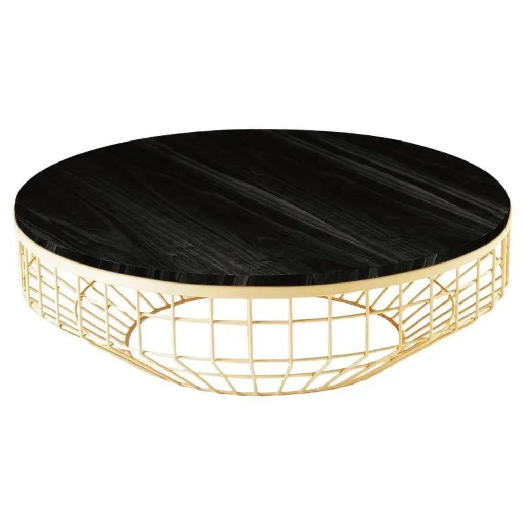 New Air Side Table, Mable Top With Polished Brass And Nero Marquina