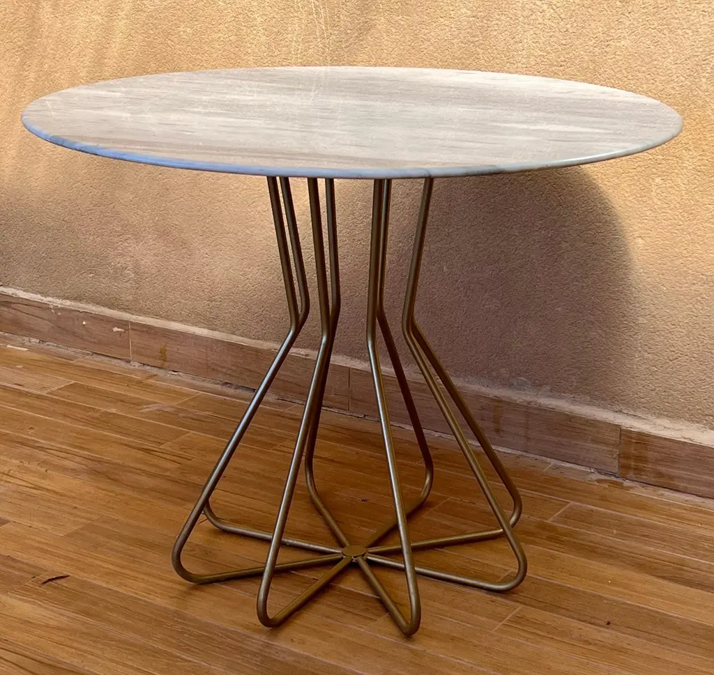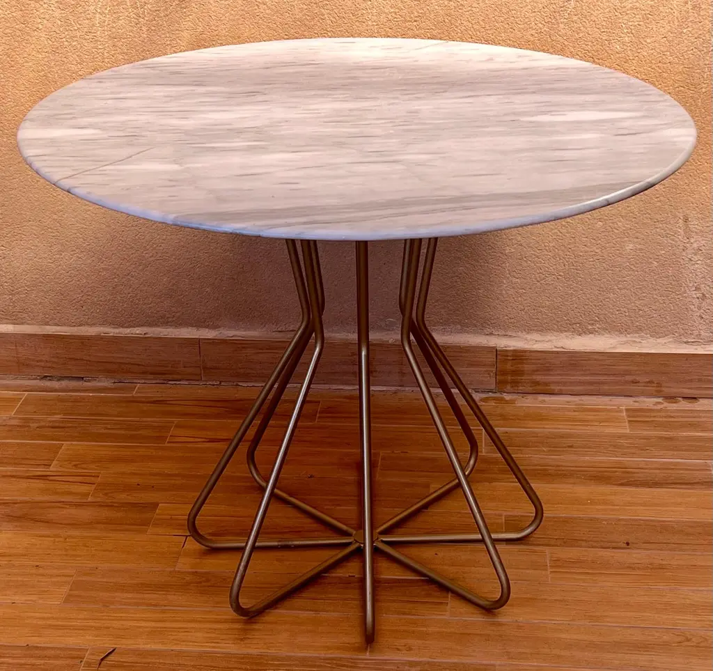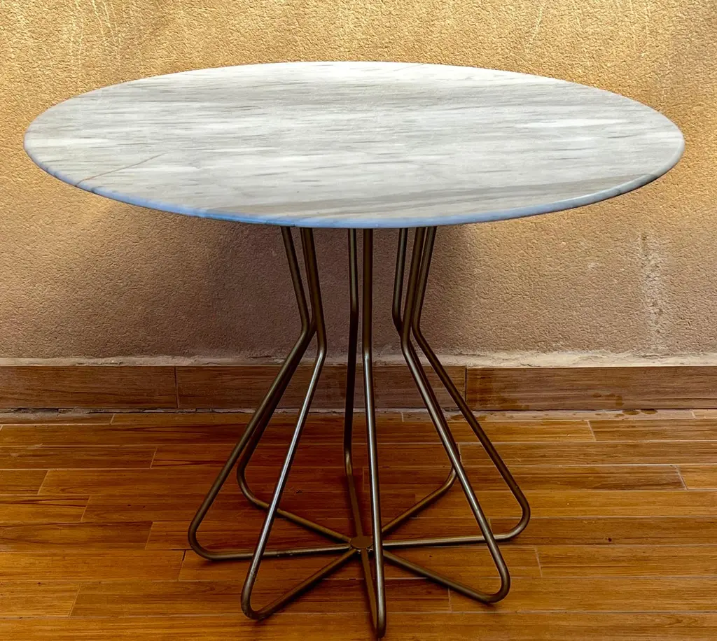 New Metal Fleur Side Table With White Marble Top, Indoor And Outdoor