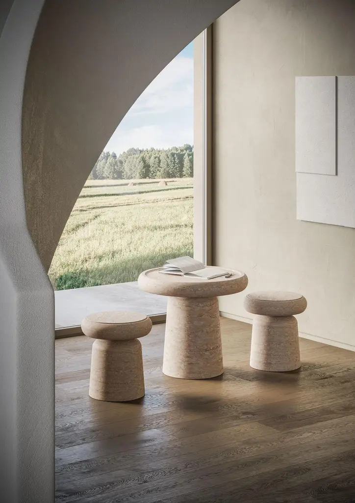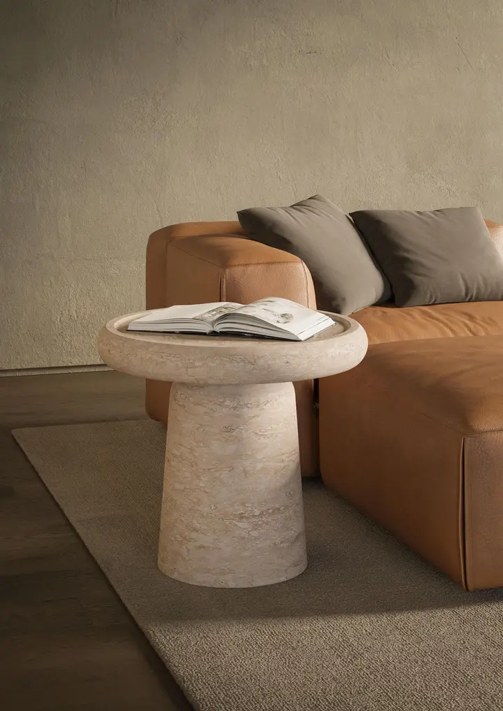 Side Table in Travertine Size: ⌀ 58 x 55 cm. - 22.8 x 21.7 in.Commercial name: Nissa Side Table in Travertine, Nissa Collection by the Spanish designer Ivan Colominas. Made in Italy, hand finished.- available also in the S version- other colour versions available: Black Marquinia and White Gioia marbleA journey to the distant land of Nevsehir, a place away from time, in the wild and exotic Cappadocia, where you can lose yourself into an infinite nature, filling your eyes with marvel. The wonder of this exceptional landscape,inspires Ivan Colominas in the creation of a new collection. The memories of the wonderful rocks "Three Beauties", revives in the timeless design of Nissa, an elegant family composed of: dining table, stool, side table and coffee table, where the quality of the material and of the craftsmanship are the essence. With MMairo's endlessly devotion to great design, Nissa Collection, will make you dream with different forms and marbles. An exceptional travel into materials and shapes, to personalize your interior with undeniable exquisiteness.