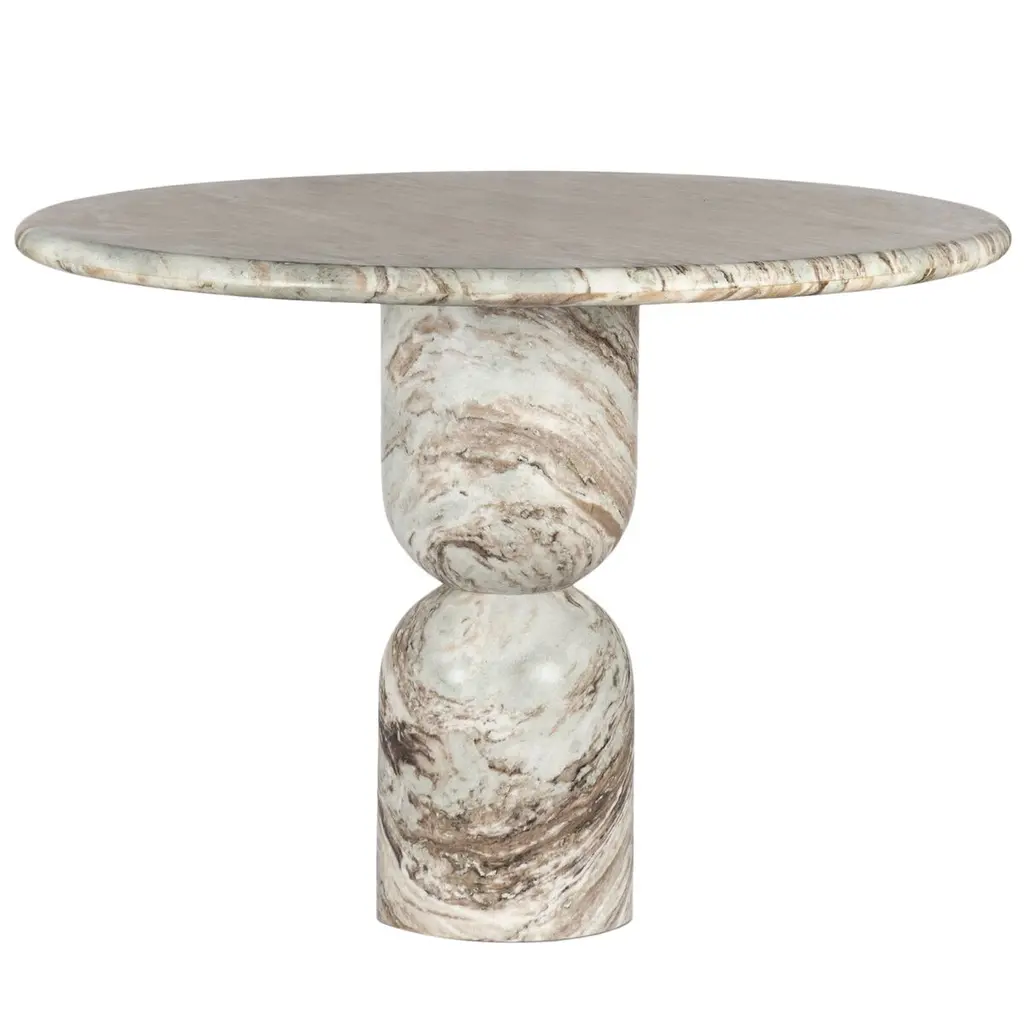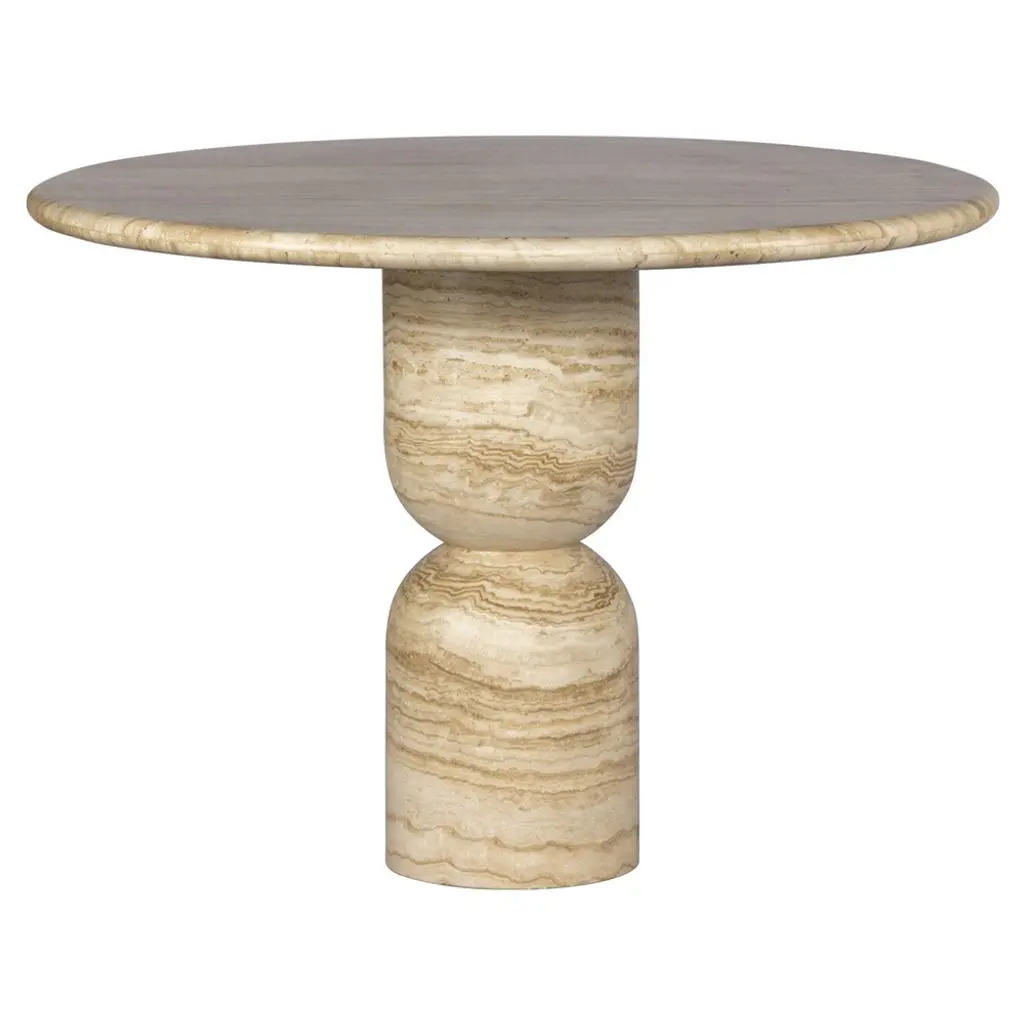 Travertine marble coffee table. Size: 75 (top diameter) x 36 (height) cm - round top -, 29.5 (top) x 14.2 (base) in., smooth finishing. Commercial name: Altana Large by the Spanish Designer Ivan Colominas.No bordersLike the turret-like rooftop terraces we find in Renaissance homes, Altana is a table design that accepts no boundaries – round all over, with no beginning nor end. Volume acting as a base and a flat table top – a depiction of the “terrace” from which objects can view their surroundings without the risk of falling.Made in Italy, hand finished.MMAIRO marble products are made of valuable materials and need to be handled with care. Any difference between similar objects and from their picture on the catalogue are due to the nature of the marble, and costitute an additional value of each piece, making it truly unique and special. The contact with acid or corrosive substances may adversely affect the surface. Hand washing is recommended. Special stain treatment, where necessary food compatible.