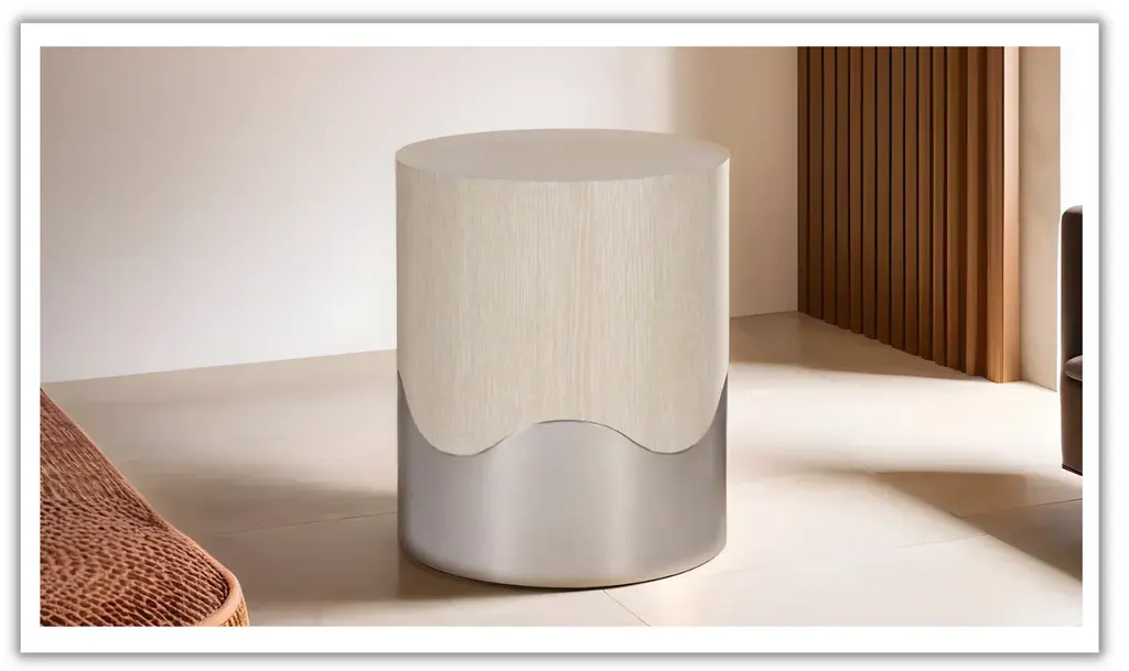 The Newbury Round End Table is a column-like partner to the Round Cocktail Table, awash in a Parchment Gesso finish and strategically wrapped in strands of natural split rattan. More than just a functional surface designed to hold a lamp, your drink (or both), this end table delivers a classic shape to your modern space while speaking the vernacular of both. Its smooth, solid surface belies a hollow construction that allows you to move this table at your whim - dont be surprised at how many places in your home it will fit in.