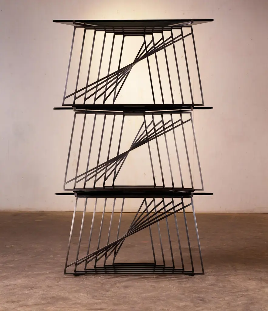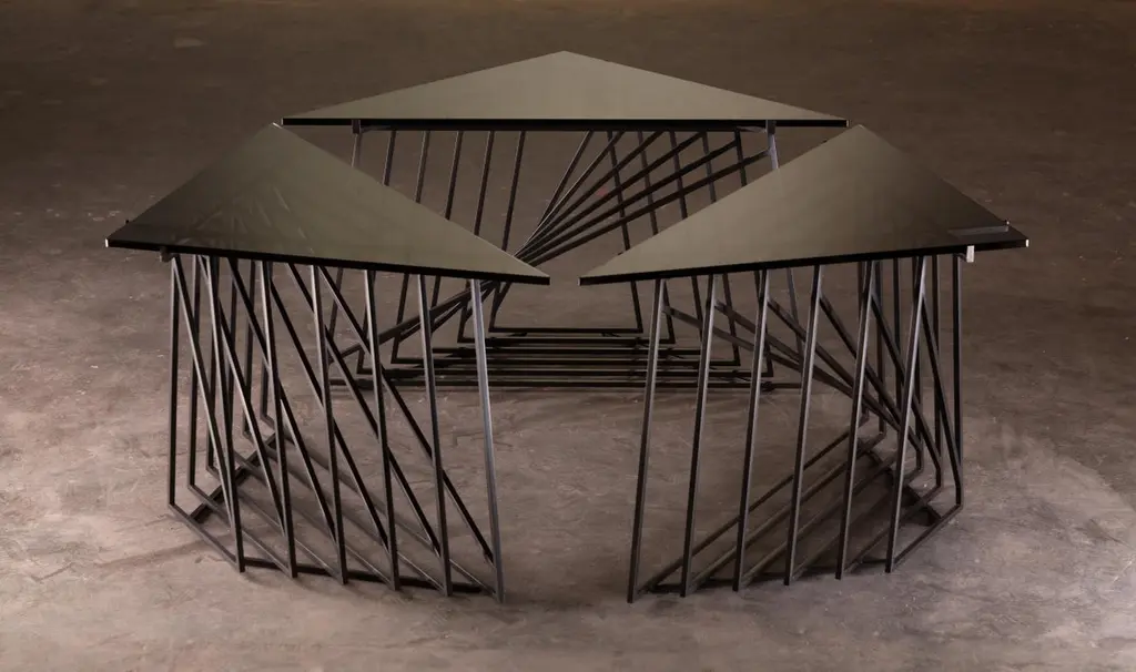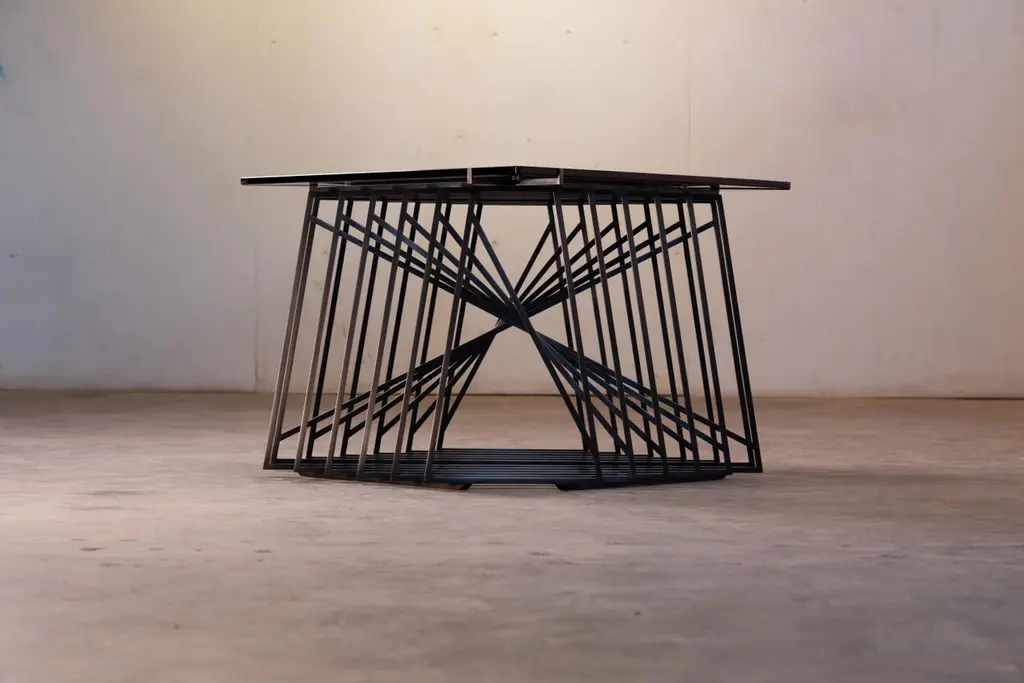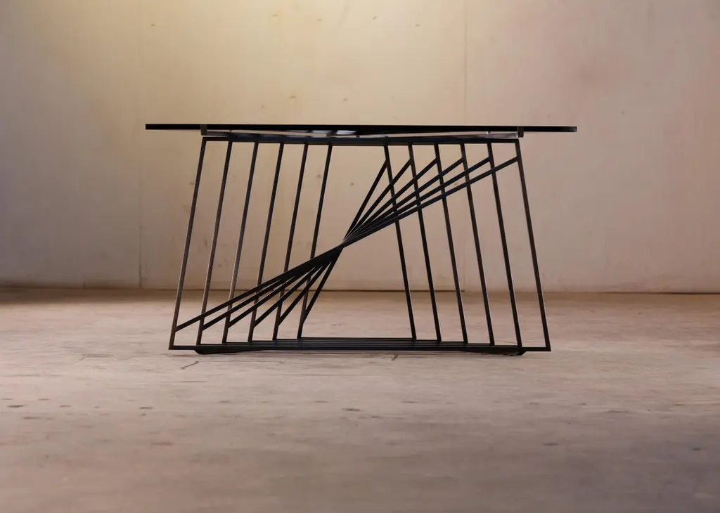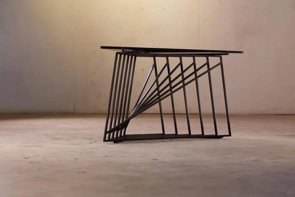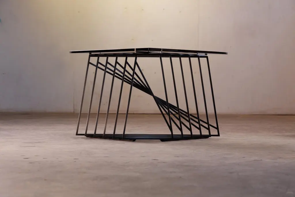 The Nexus Side Tables are a sculptural study, finely constructed and finished with satin black oxide steel and smoked gray glass. Versatile and modular, the triangular tables can be fully customized to be used independently, as a square duo, an asymmetric trio, or dispersed individually throughout the home. Using geometric repetition and proportional scale for visual impact, the Nexus End Tables are a nod to playful perspectives and spatial relationships. They are intended as functional art furniture to elevate the home. In keeping with Force/Collide's signature style, various perspectives reveal shifting points of connection and present metal as a fluid material. The effect is exponential when tables are creatively combined as a set.The Nexus End Tables are designed and made-to-order by Force/Collide in our Seattle, WA studio.
