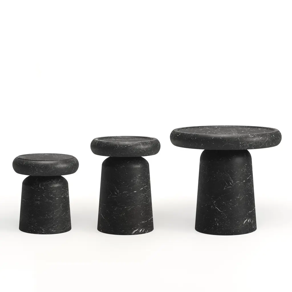 Nissa M Nero Marquinia Marble Contemporary Side Table by Ivan ColominasDimensions: Ø 58 x H 55 cm.Materials: Nero Marquinia Marble.Available in Nero Marquinia, Travertino and Bianco Gioia. Available in two different size options. Please contact us.A journey to the distant land of Nevsehir, a place away from time, in the wild and exotic Cappadocia, where you can lose yourself in an infinite nature, filling your eyes with marvel. The wonder of this exceptional landscape inspires Ivan Colominas in the creation of a new collection. The memories of the wonderful rocks "Three Beauties", revive in the timeless design of Nissa, an elegant family composed of: dining table, stool, side table, and coffee table, where the quality of the material and the craftsmanship are the essence. With MMairo's endless devotion to great design, Nissa Collection will make you dream of different forms and marbles. An exceptional travel into materials and shapes, to personalize your interior with undeniable exquisiteness.MmairoThe quality of the handicraft, the luxury of the materials, and the value of a planning concept are all modern influences: combining them through objects, home accessories, and exclusive furnishings is Mmairo’s design. Established in 2016, with the dream of a unique piece, the company has made marble its material of choice; unique, precious, never equal to itself, dreamlike, with those endless veins. The company expresses passion for design, quality materials, and beauty conjoined with decoration. It all begins in Carrara, international capital of marble, in the steady embrace of the Apuan Alps, where Mmairo has made its home to oversee the quarrying and processing of this pure gift of nature. The Apuan Alps’ heritage is beauty, and Mmairo has been able to harness the area’s deep roots to build relationships with local manufacturers, sharing dust and sunsets, because expertise on the subject is the first step towards artistic creation. For its collection, Mmairo has selected international and diverse brands, architects, designers, and artists, whose private imaginings transform objects that range from the mundane, used for cooking and dining, into customised vases, centrepieces, and cake stands. Fine materials, such as marble that nature supplies, never forfeit their uniqueness for a shared label. For this reason, Mmairo resolved to create its own identity: solid, tangible, recognisable through original and contemporary objects that complement an eclectic element born in history,