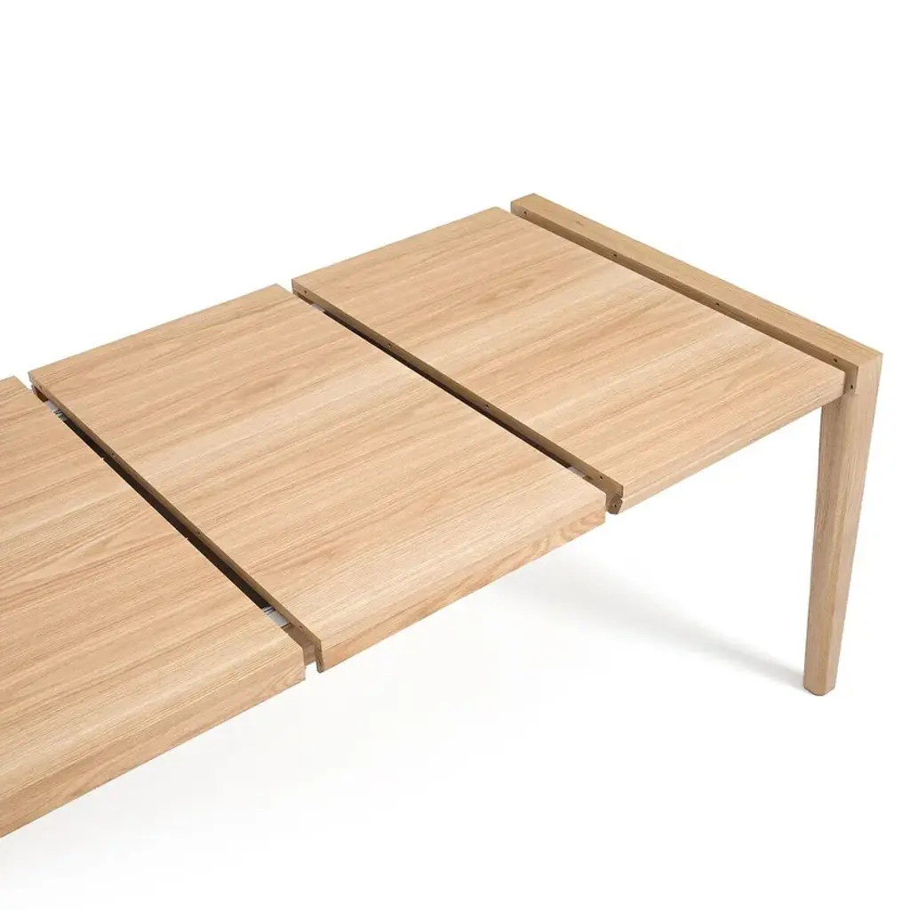 The Nizou extending rectangular table is a creation by Emmanuel Gallina, exclusively for AMPM. Generous and functional, this rectangular table can seat 8, 10 or 12 people thanks to the 2 extensions under the top.Top in MDF with FSC® oak veneer, polyurethane finishBase in solid FSC® oak, polyurethane finish2 extension leaves made of MDF veneered with FSC® oak that can be stored under the topCastors under the 2 feet to facilitate opening the table and thus the installation of the extensionsfrom 8 to 12 place settings