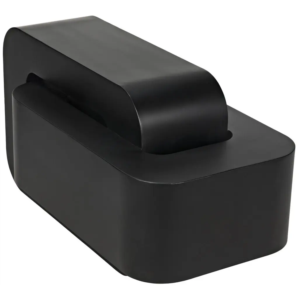 Spare and sophisticated, the lines of this metal side table are industrial and edgy. Inspired by thick, cast iron chains, its twisted lines provide a myriad of surfaces and allow for multiple display options. Hand-forged, and hand-finished in black, it is quite simply very, very cool.