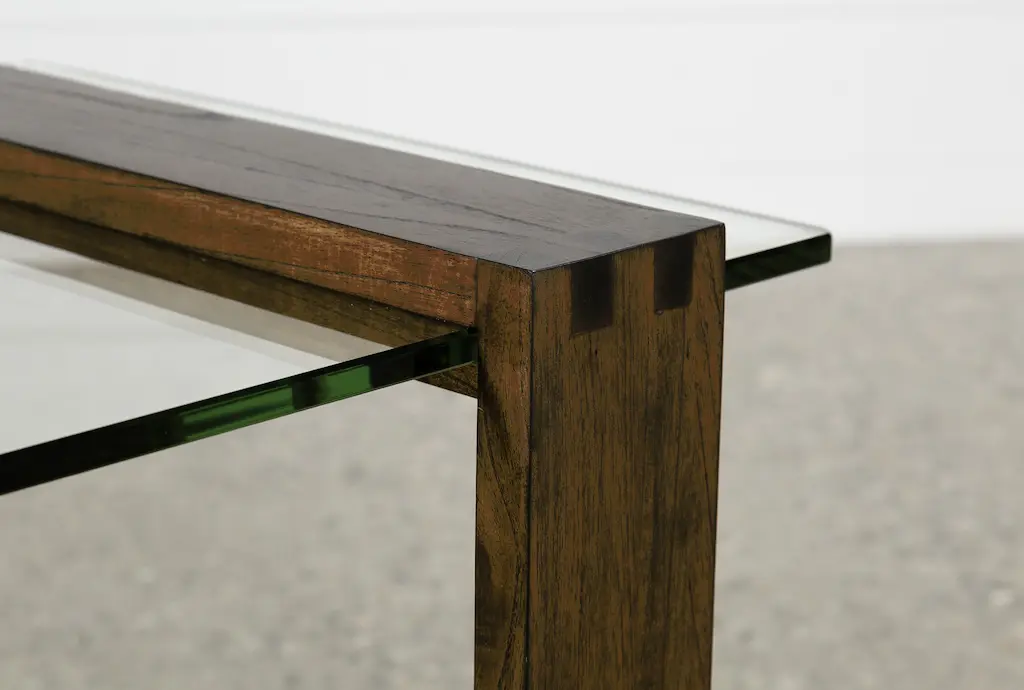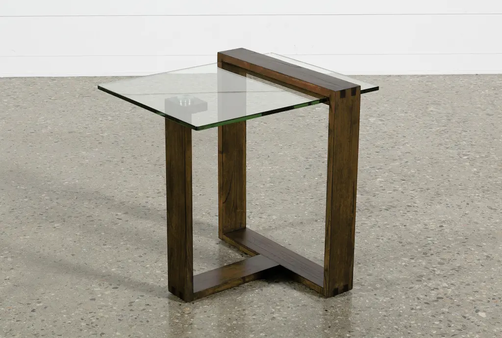 Bring sleek, sculptural style to your living room with our Nola end table’s mixed-material design and modern silhouette. Crafted with a mindi wood frame and glass top, this unique piece conveys an appreciation for art and architectural form. You’ll love the clean lines, sturdy construction and incredible value. This design also serves as the perfect bedside table.
