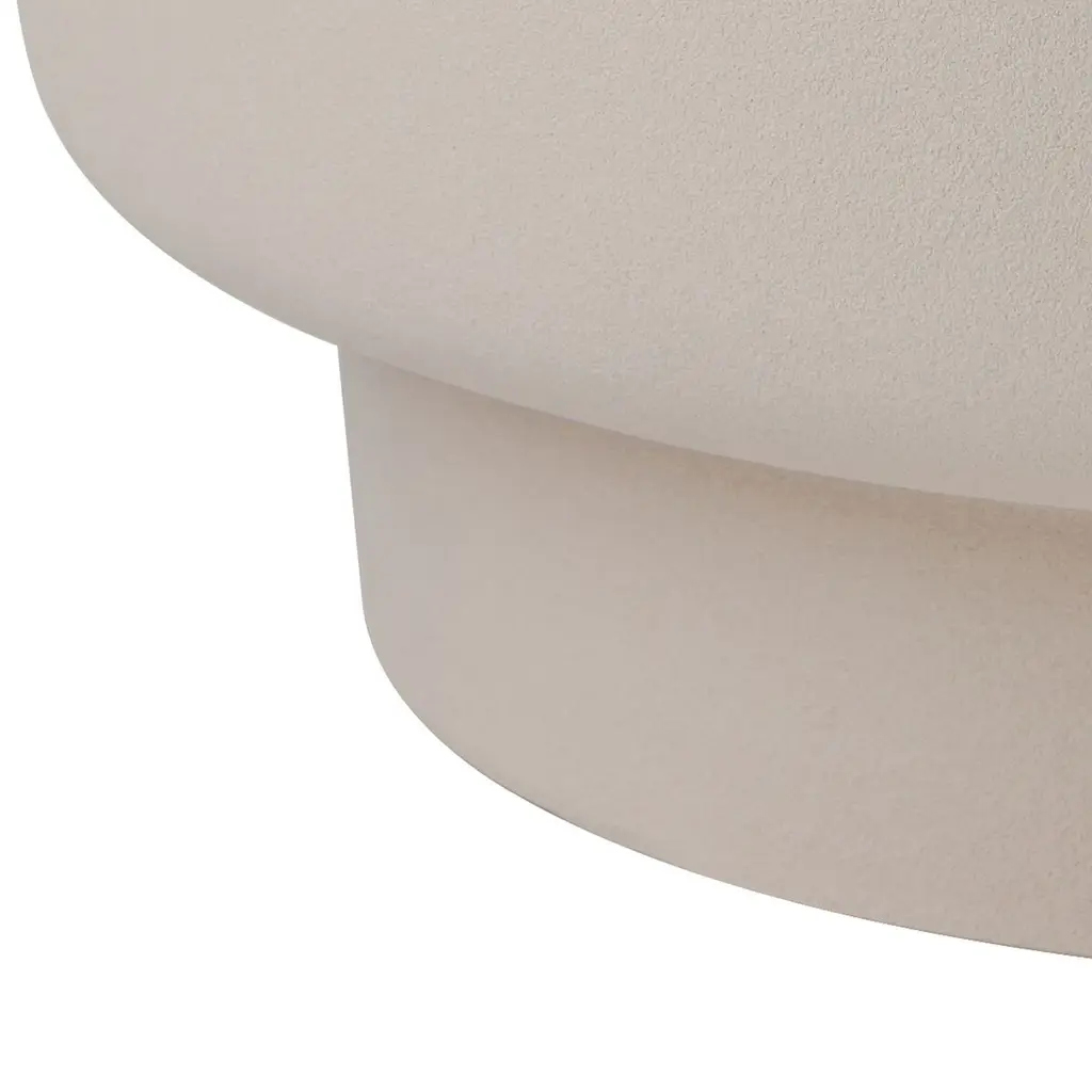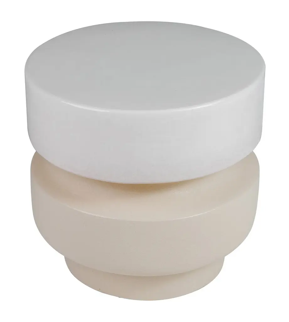 It's no exaggeration to call this handcrafted ceramic side table a work of art. Suitable for outdoor as well as indoor use, it can also serve as a stool. The semigloss white top provides a subtle textural contrast to the matte taupe bottom. Nylon glides on the bottom will help protect your flooring.