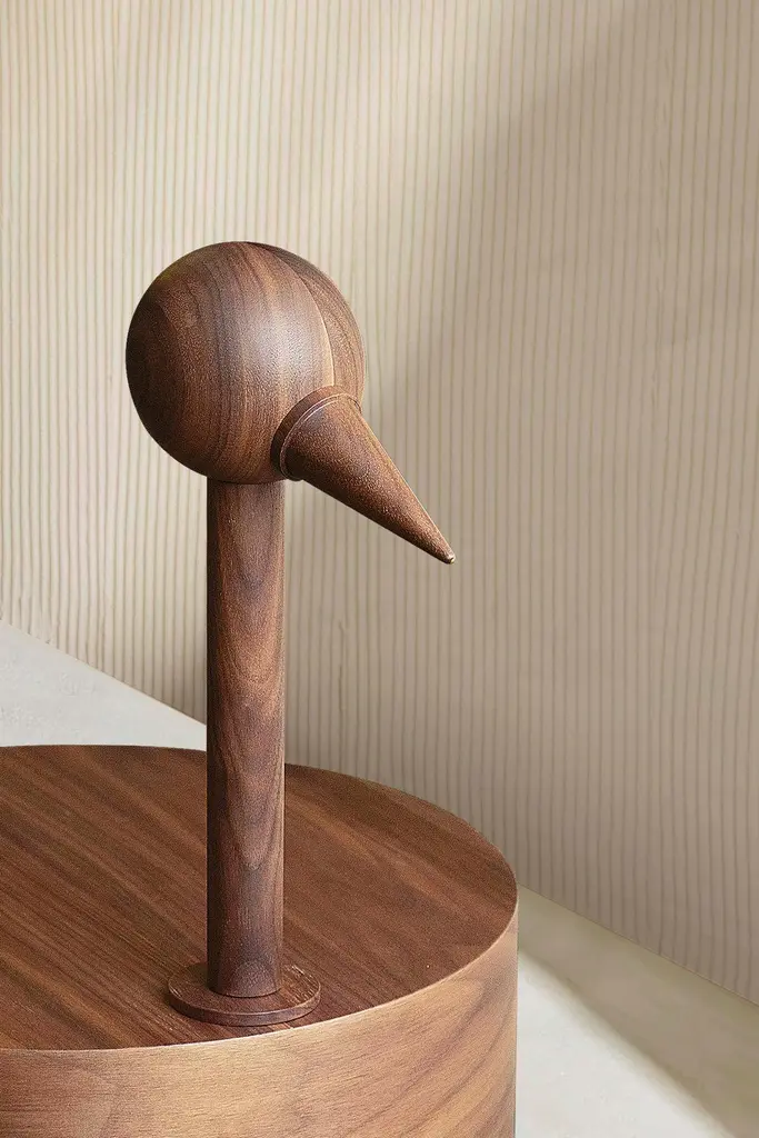 The Rara Avis SIde Table is the result of a dialogue between art and design. It was designed by the Spanish Design Studio Mermelada, and it is hand crafted in Spain by master cabinetmakers who specialize in the production of art pieces. These tables are created from the assembly of basic geometric shapes, combining a body in natural walnut veneered wood with a rosso levanto brown marble base, resulting in a beautiful sculptural bird piece.