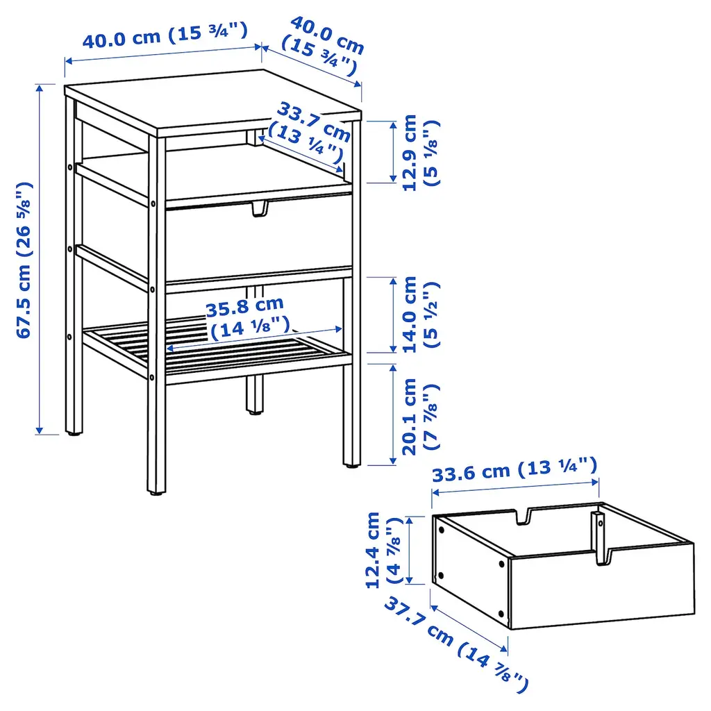 NORDKISA Nightstand - bamboo 15 3/4x15 3/4 ". The drawer can be accessed from both sides. Cables are easy to manage by running them through the handle on either side of the drawer. NORDKISA series in bamboo coordinates beautifully with both our NORDLI and ELVARLI storage series.