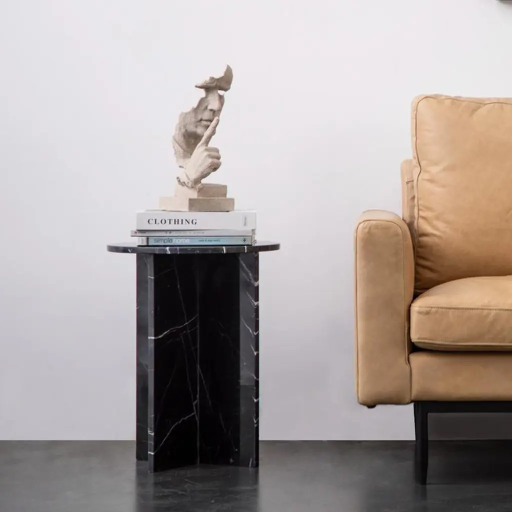𝗣𝗿𝗼𝗱𝘂𝗰𝘁 𝗗𝗲𝘁𝗮𝗶𝗹𝘀:The model has been created to portrait a minimalist and geometric expression. Its design combines different shapes including a round top, a rectangular base forming a ‘T’ shape when viewed from the side, and a triangular cut in the frontal side. This model is also a great option to combine with other small size tables.Inspired by the concept of Brugskunst, Pure collection goes beyond furniture design and looks for an object that is unique and designed as a piece of art by its own, but has been given a utility, adding then the furniture attribute.𝗧𝗿𝗮𝗱𝗶𝘁𝗶𝗼𝗻𝗮𝗹 𝗗𝗲𝘀𝗶𝗴𝗻:NORDST is a Danish company that's been producing quality marble furniture for customers all over the world for many years. The focus has always been to use beautiful stones in a contemporary design setting. NORDST is also a major furniture player producing for several renowned scandinavian brands, which is also why we have our own manufacturing base in China, where we will ship out from.𝗞𝗲𝘆 𝗙𝗲𝗮𝘁𝘂𝗿𝗲𝘀:→ The model features a minimalist and geometric design, combining various shapes such as a round top, rectangular base forming a 'T' shape, and a triangular cut on the frontal side.→ Designed to be a great option for combining with other small-sized tables, offering flexibility in arranging spaces.→ Beyond furniture design, the collection aims to be an object with artistic value while maintaining practical utility.→ Incorporates different shapes like round, rectangular, and triangular, creating a visually interesting and dynamic aesthetic.→ Each piece in the Pure collection is designed as a unique work of art, elevating it beyond mere functional furniture.𝗠𝗮𝗿𝗯𝗹𝗲 𝗦𝗽𝗲𝗰𝘀:→ 1.7cm thickness→ Polished finished design enhances the visual appeal𝗙𝗿𝗮𝗺𝗲: → Chamfer edge design adds a touch of sophistication→ Anti-grease treated𝐂𝐮𝐬𝐭𝐨𝐦𝐞𝐫𝐬 𝐜𝐚𝐧 𝐜𝐡𝐨𝐨𝐬𝐞 𝐟𝐫𝐨𝐦:𝐌𝐚𝐫𝐛𝐥𝐞 𝐂𝐨𝐥𝐨𝐫𝐬 →☑ White Mountain Marble☑ Black Marble☑ Green Marble☑ Calacatta Marble☑ Grey Marble☑ Brown Marble☑ Special White Marble☑ Red Travertaine Marble☑ Grey Travertaine Marble𝐅𝐢𝐧𝐢𝐬𝐡𝐞𝐬 →☑ Polished☑ Matte / Honed𝐅𝐫𝐚𝐦𝐞 →☑ Power Coated Iron Black☑ Power Coated Iron White☑ Brass Plated Steel☑ Copper Plated Steel☑ Stainless Steel☑ No Frame