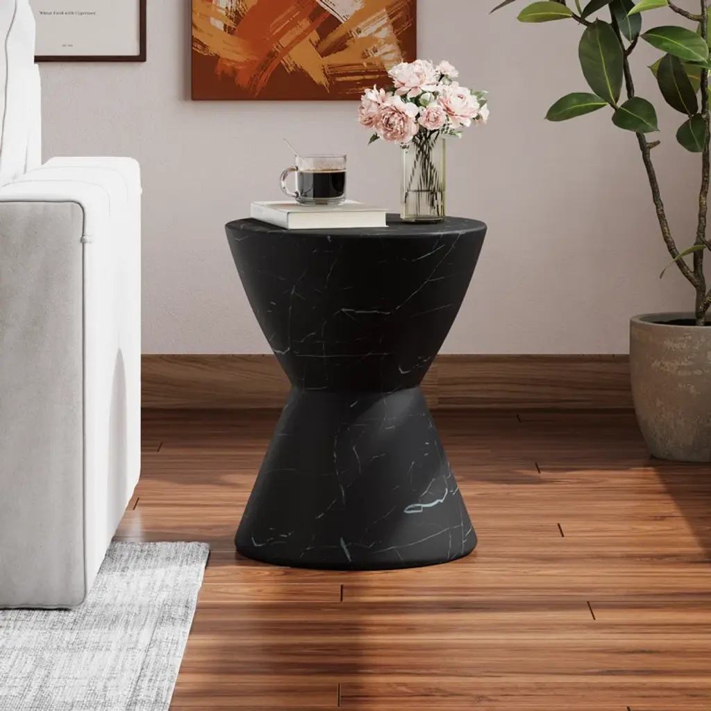 Set your outdoor space up for immediate success with a perfect accent to your seating ensemble. With a smooth lightweight concrete structure and modern design, this side table offers high durability and stunning looks for your backyard or patio. Perfect as an end table next to your chat set or sectional, this piece will hold any snacks or chilled drinks in sophisticated grace. Finished with an hourglass shape and pedestal structure, this table is a seamless addition to any space.