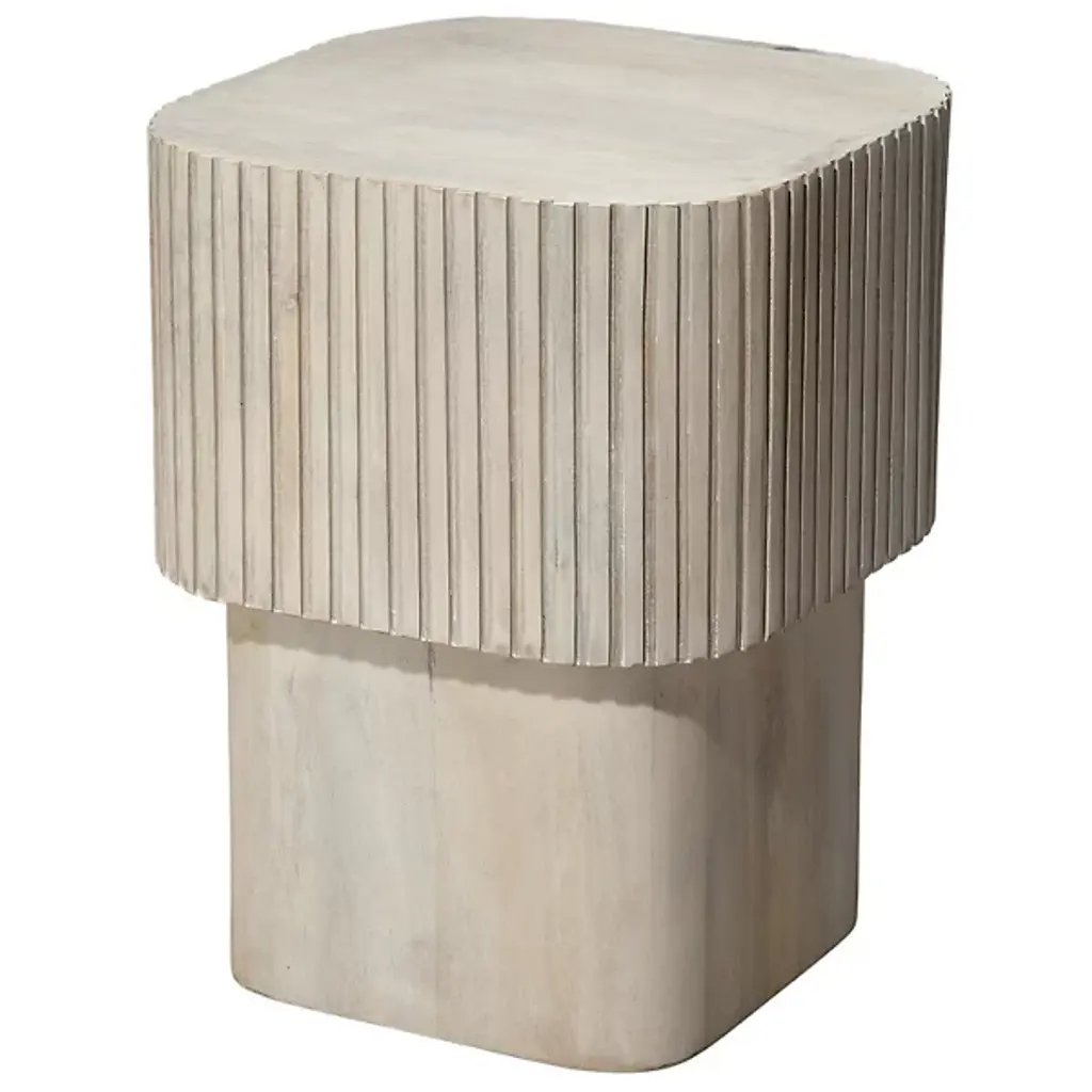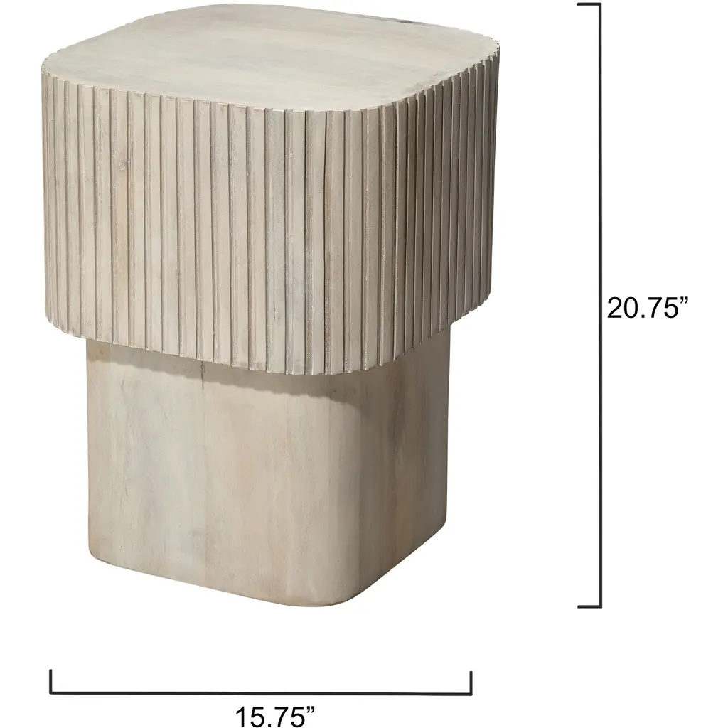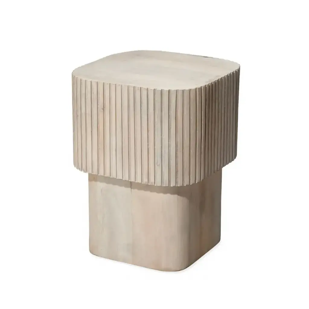 Inspired by European clockworks, these unique accent tables' clean, modern lines are distinguished by richly textural ribbing around the tables' top halves. Each one is expertly artisan carved from the mango tree. Use in singles or group a few for a grand statement piece.