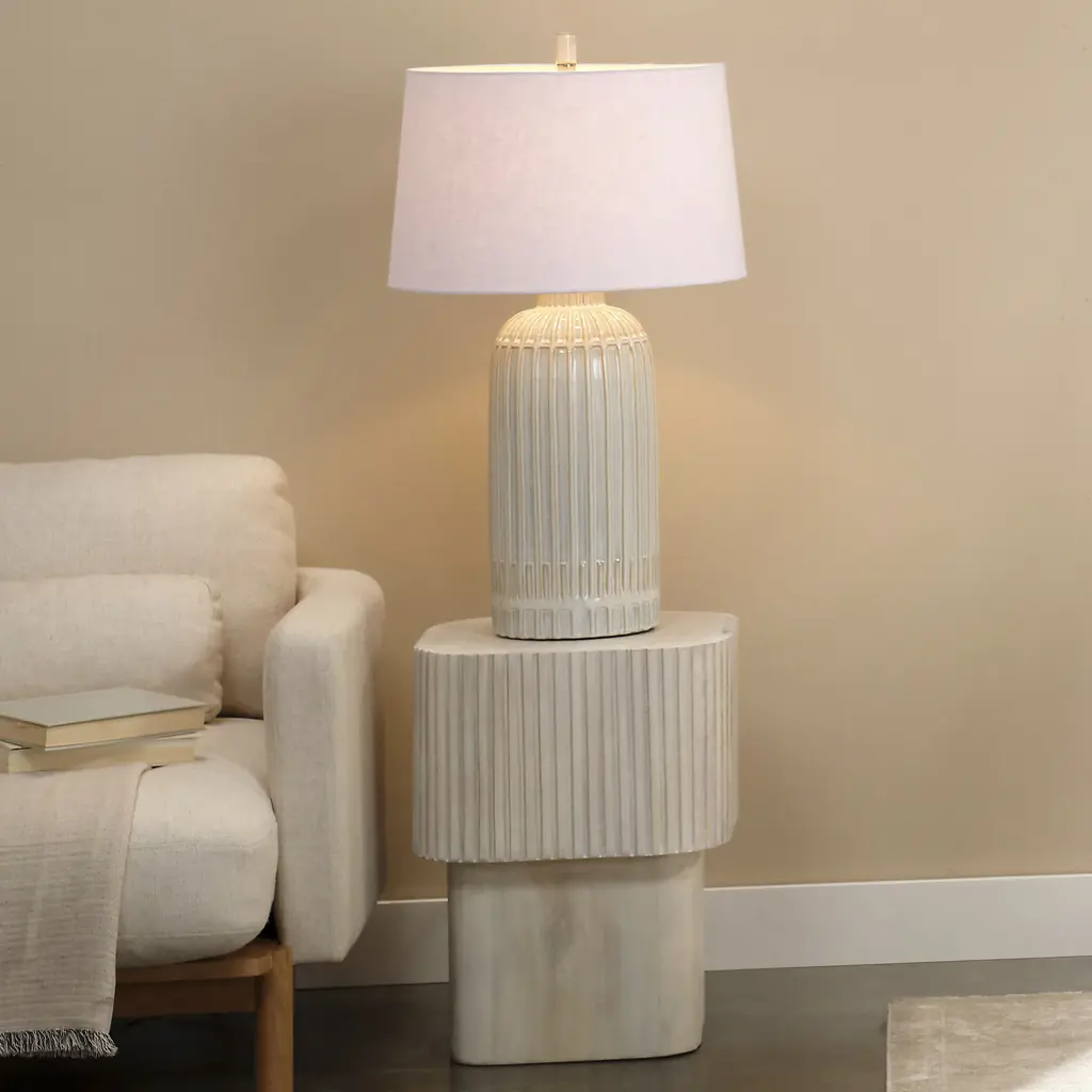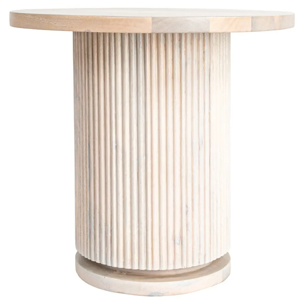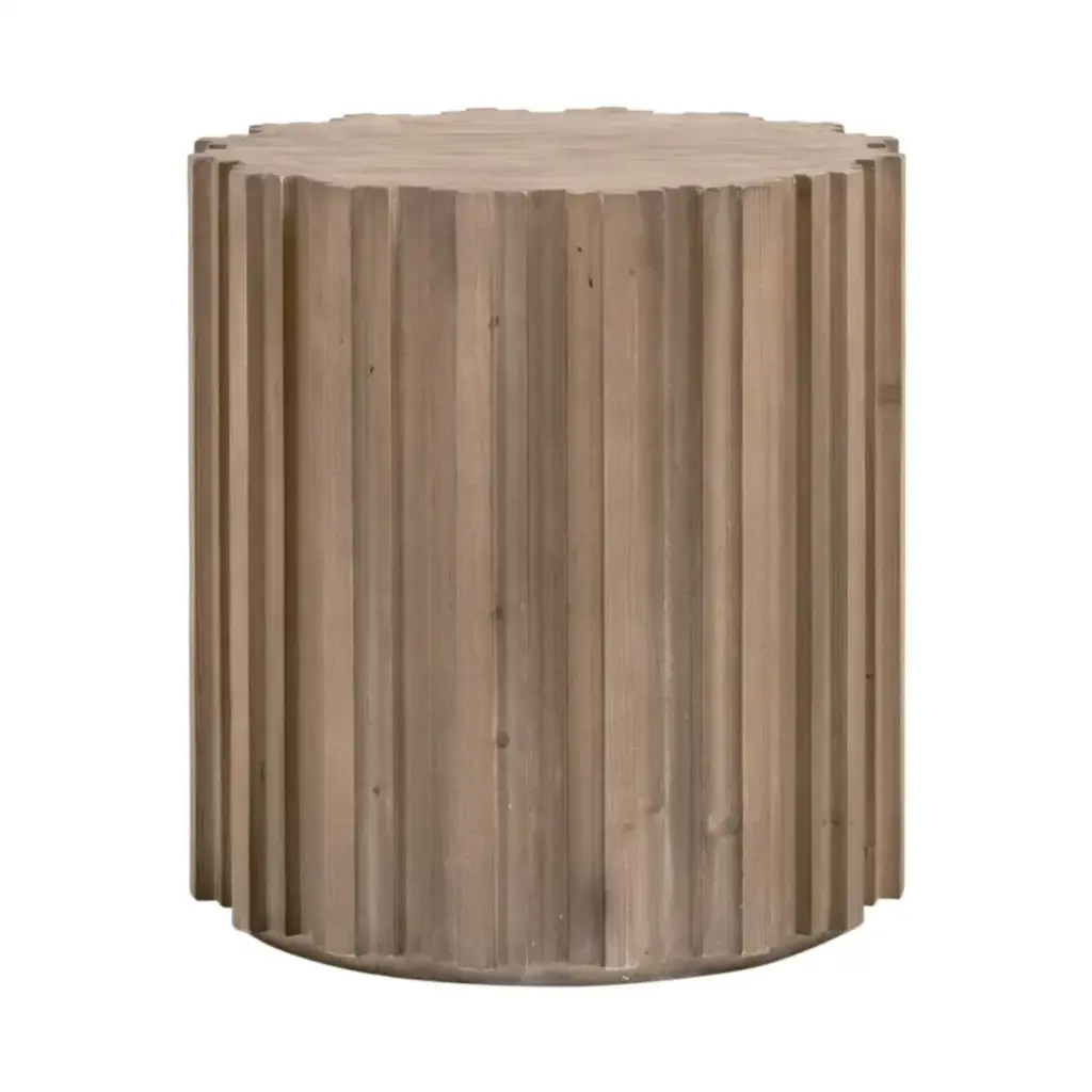 Inspired by European clockworks, these unique accent tables' clean, modern lines are distinguished by richly textural ribbing around the tables' top halves. Each one is expertly artisan carved from the mango tree. Use in singles or group a few for a grand statement piece.