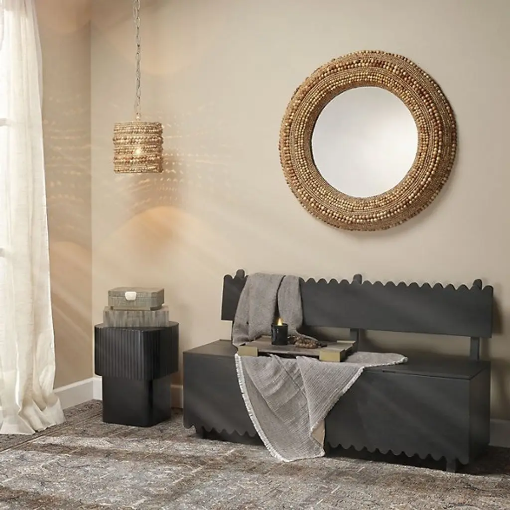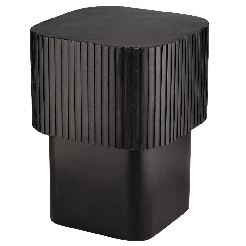 The Notch Square Side Table from Jamie Young Co. translates industrial precision into handcrafted mango wood. The squared profile offers a different perspective on the collection's clockwork-inspired design. Hand-carved ribbing adds dimensional interest to the upper section, while the smooth base provides stability. Protected by end caps, this indoor piece maintains its integrity over time. Meanwhile, the table's proportions allow it to function independently or as part of a coordinated group, offering flexibility in arrangement and use.