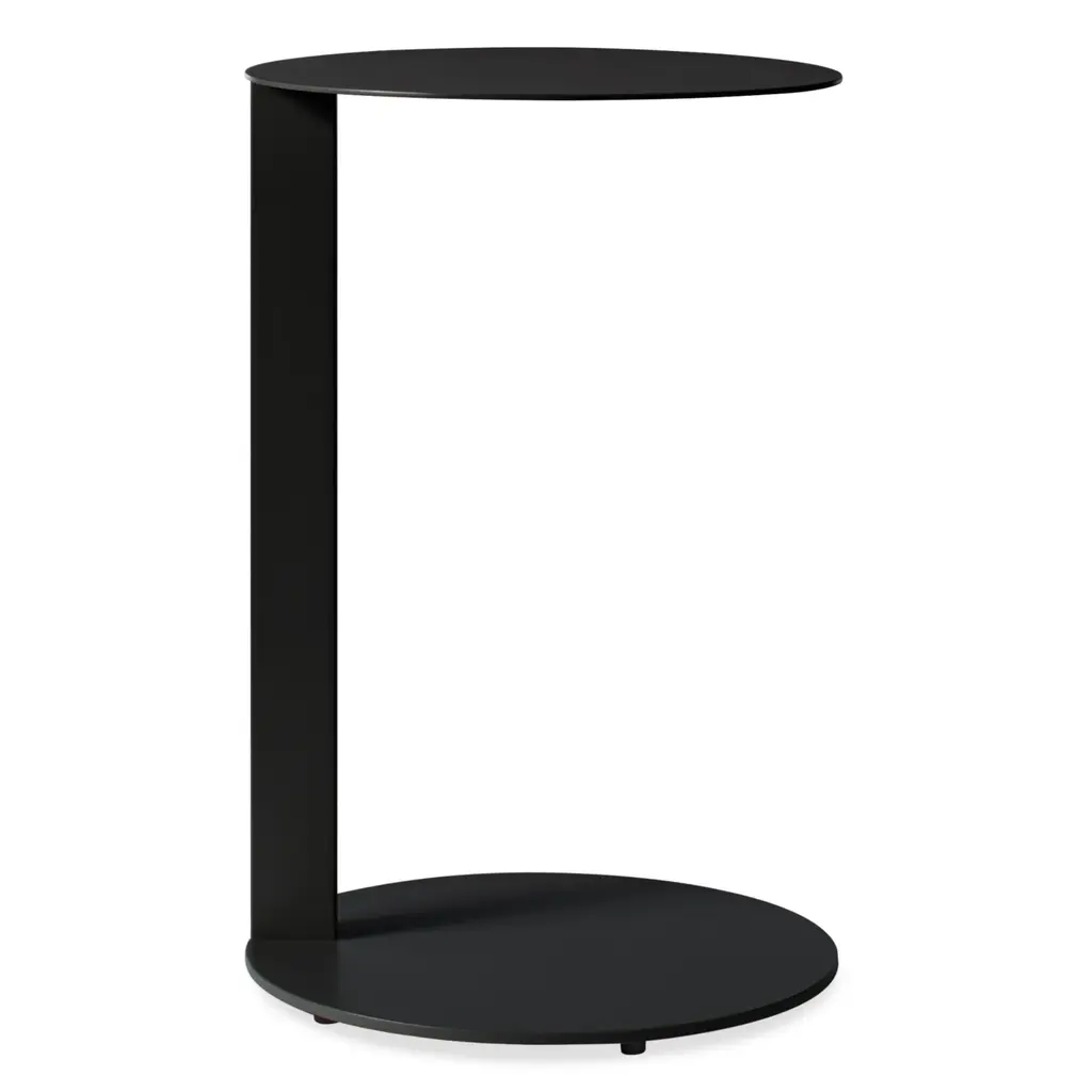 A stylish side table with a smart, cantilevered design, the Note Side Table from Blu Dot is a simple, yet impactful piece with endless possibilities . Featuring a slim column supporting a cantilevered round tabletop and base, this side table is designed to easily slide under chairs and sofas without scratching the floor. Suitable for indoor use and well-covered outdoor use, this table can act as a streamlined side table flanking either side of a sofa or as a mobile laptop station for working from home.Highlights
