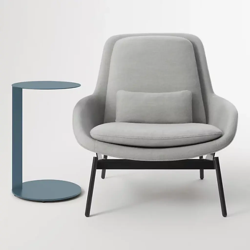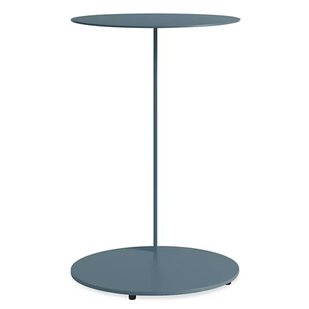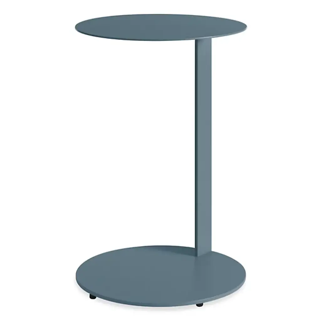 The Note Tall Side Table from Blu Dot uses a single powder-coated steel spine to support both its cantilevered round top and circular base. It seems to hover beside seating areas, providing surface space without any bulk. Rubber feet protect floors from scratches while maintaining stability during use. The cantilevered design means the table can slide partially under sofas or chairs, bringing work surfaces closer to users. It is perfect for bedside use, living room laptop work, or anywhere you need a surface that doesn't consume floor space with traditional four-leg construction.