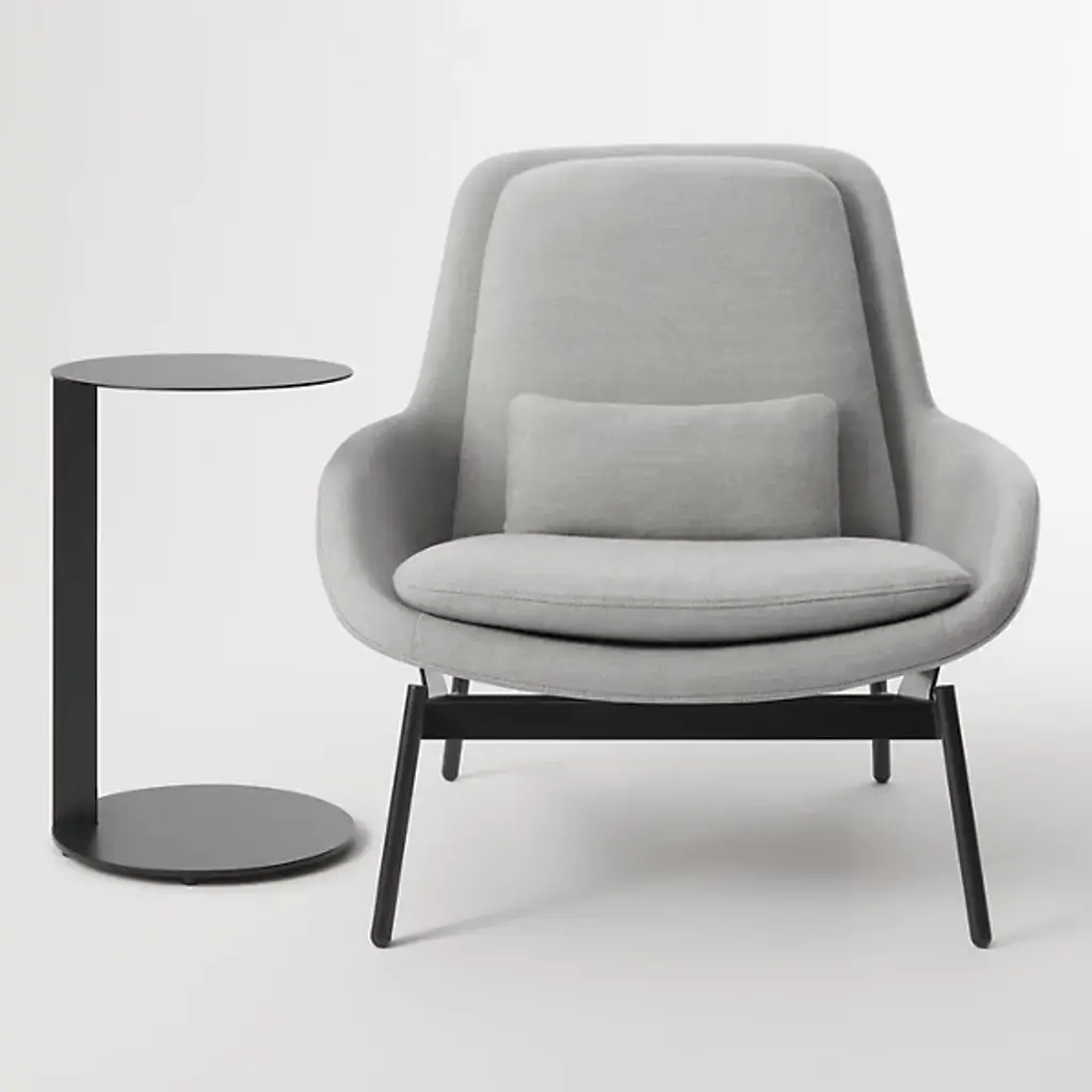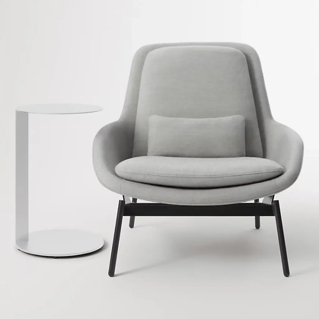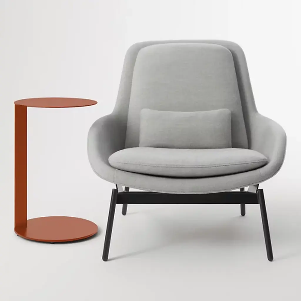 The Note Tall Side Table from Blu Dot uses a single powder-coated steel spine to support both its cantilevered round top and circular base. It seems to hover beside seating areas, providing surface space without any bulk. Rubber feet protect floors from scratches while maintaining stability during use. The cantilevered design means the table can slide partially under sofas or chairs, bringing work surfaces closer to users. It is perfect for bedside use, living room laptop work, or anywhere you need a surface that doesn't consume floor space with traditional four-leg construction.