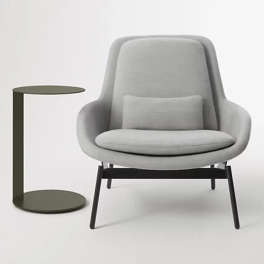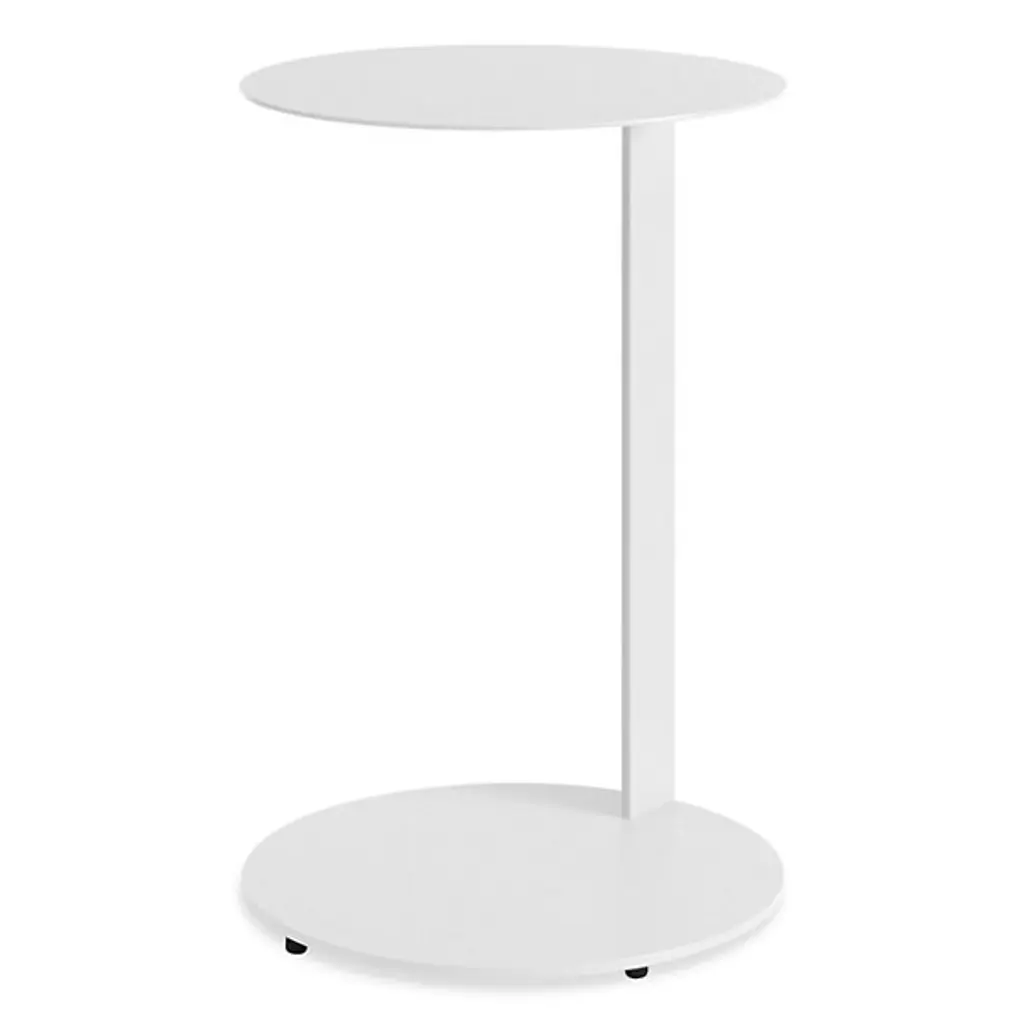 The Note Tall Side Table from Blu Dot uses a single powder-coated steel spine to support both its cantilevered round top and circular base. It seems to hover beside seating areas, providing surface space without any bulk. Rubber feet protect floors from scratches while maintaining stability during use. The cantilevered design means the table can slide partially under sofas or chairs, bringing work surfaces closer to users. It is perfect for bedside use, living room laptop work, or anywhere you need a surface that doesn't consume floor space with traditional four-leg construction.