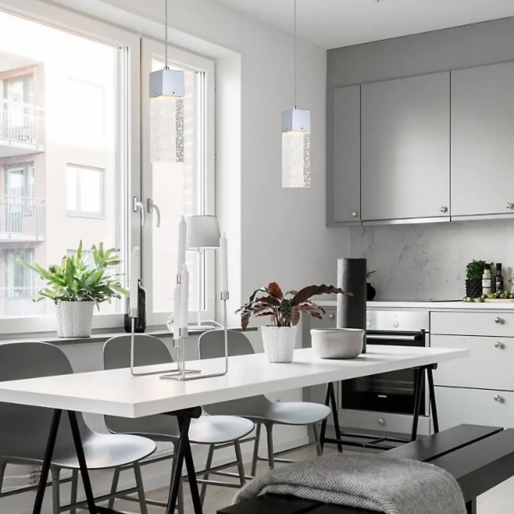 The Novastella LED Mini Pendant from Elegant Lighting embodies the essence of celestial wonder, bringing a piece of the night sky into your home. The multi-sided crystal shade acts as a prism, transforming a single LED source into a galaxy of twinkling lights. Its adjustable hanging height allows for customized placement, whether hovering low over a side table or suspended high in an entryway. The dimmable feature lets you set the mood from a soft glow to vivid brightness.