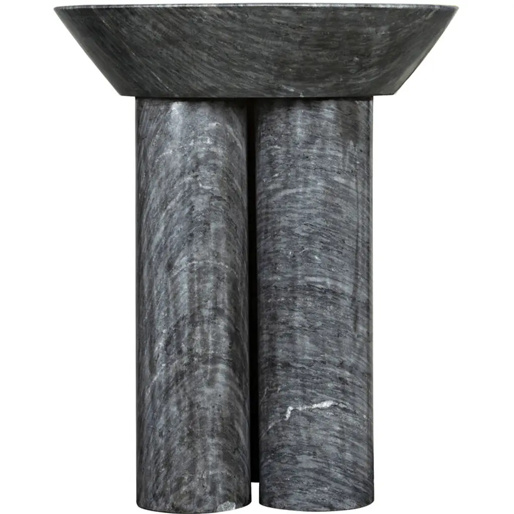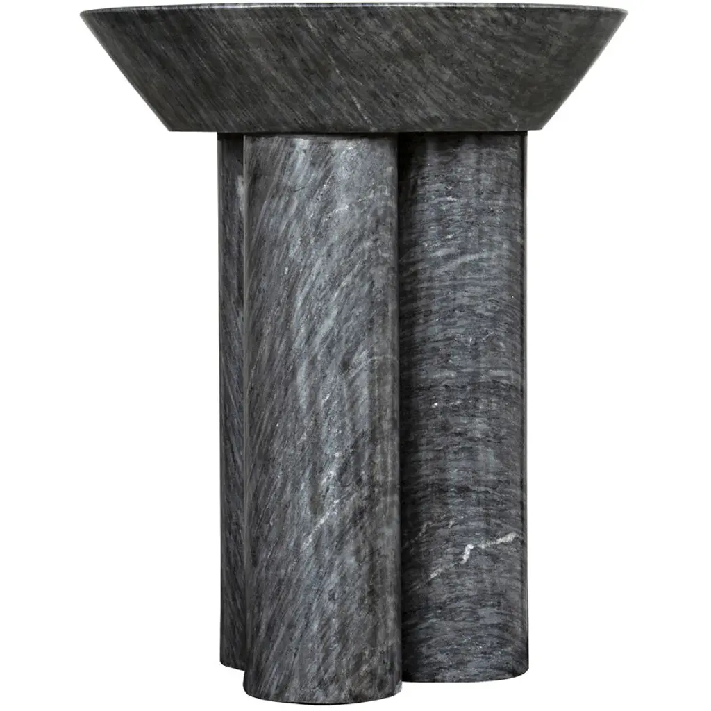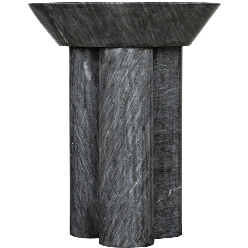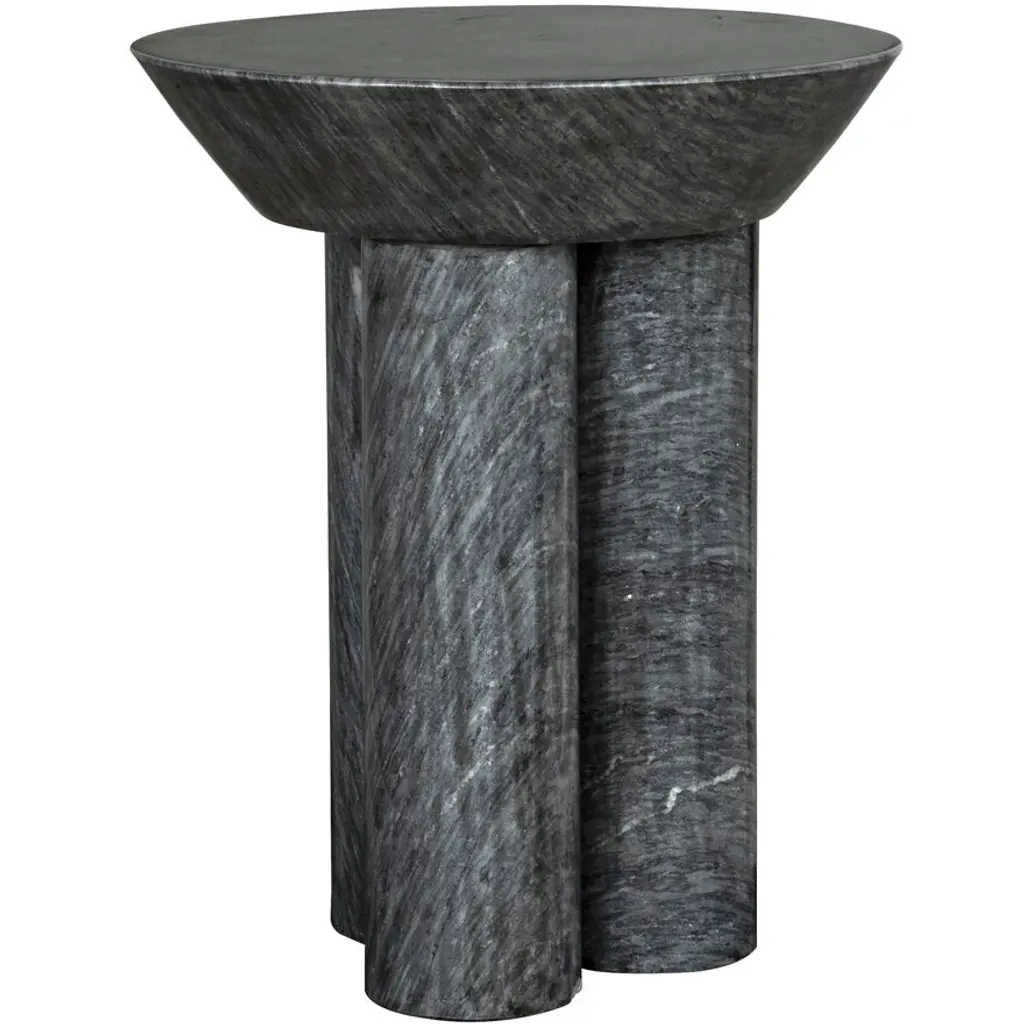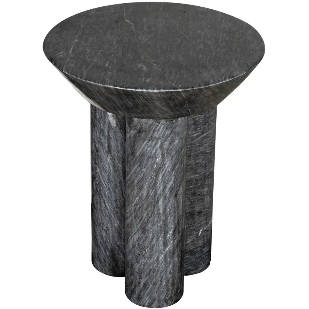 Contemporary, edgy, and quite simply exceptional, this side table is handcrafted of minimally finished marble, it features a black marble coat finish.