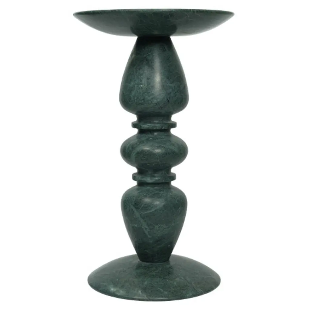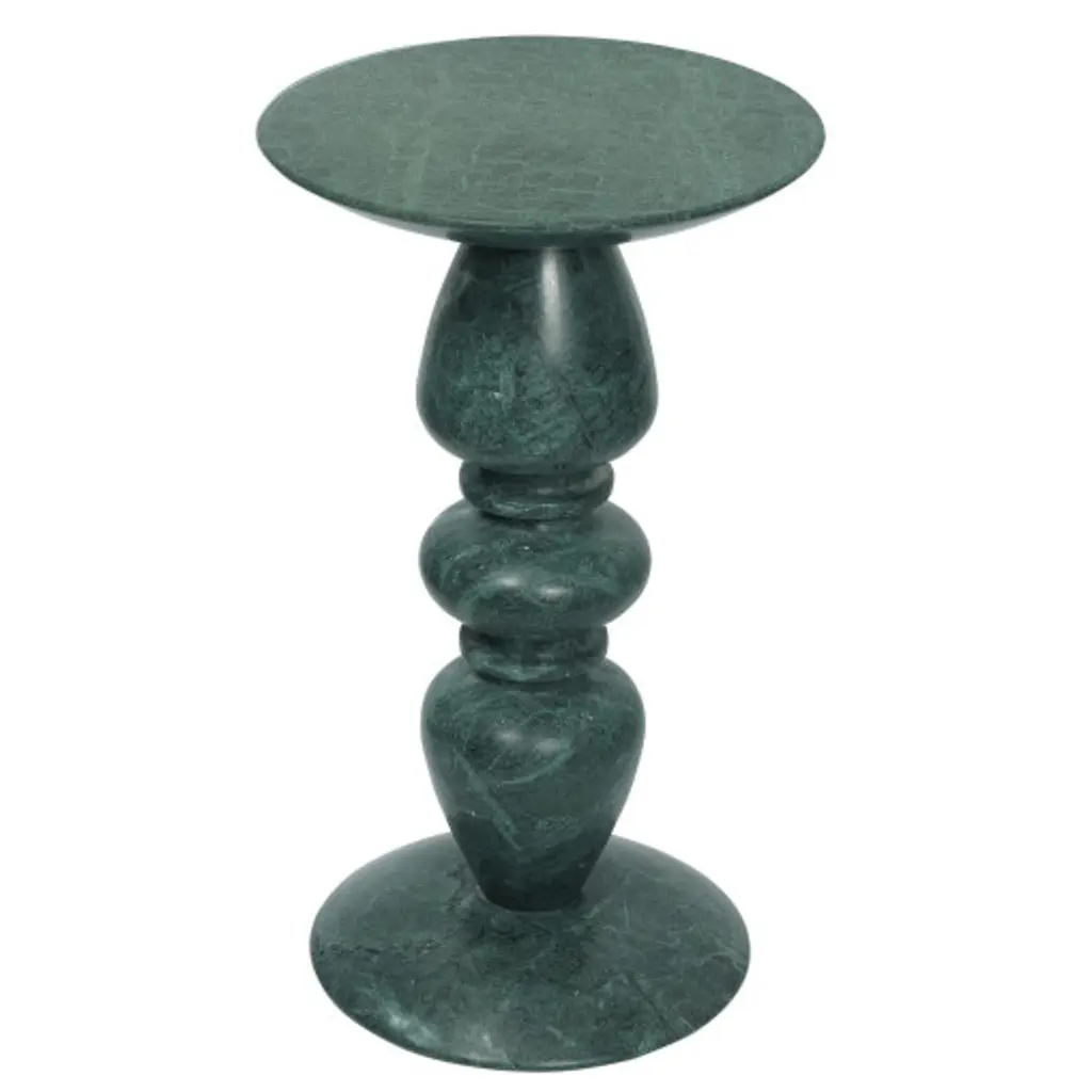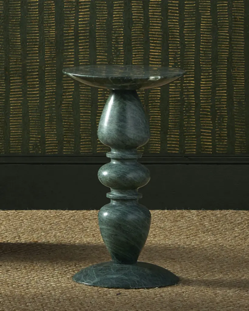 The Nubia Accent Table is like a beautiful chess piece with its turned column rising from a round base that echoes the shape of the top. The steep bullnose on the underside of the top is also repeated, in reverse, on the base. Made of natural marble, the veining on each table will be unique. The top, base, and column are shipped together in three pieces.