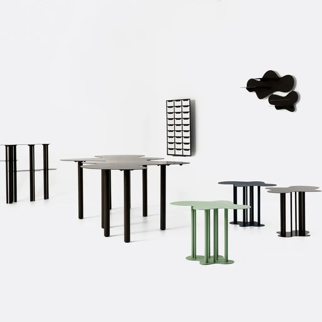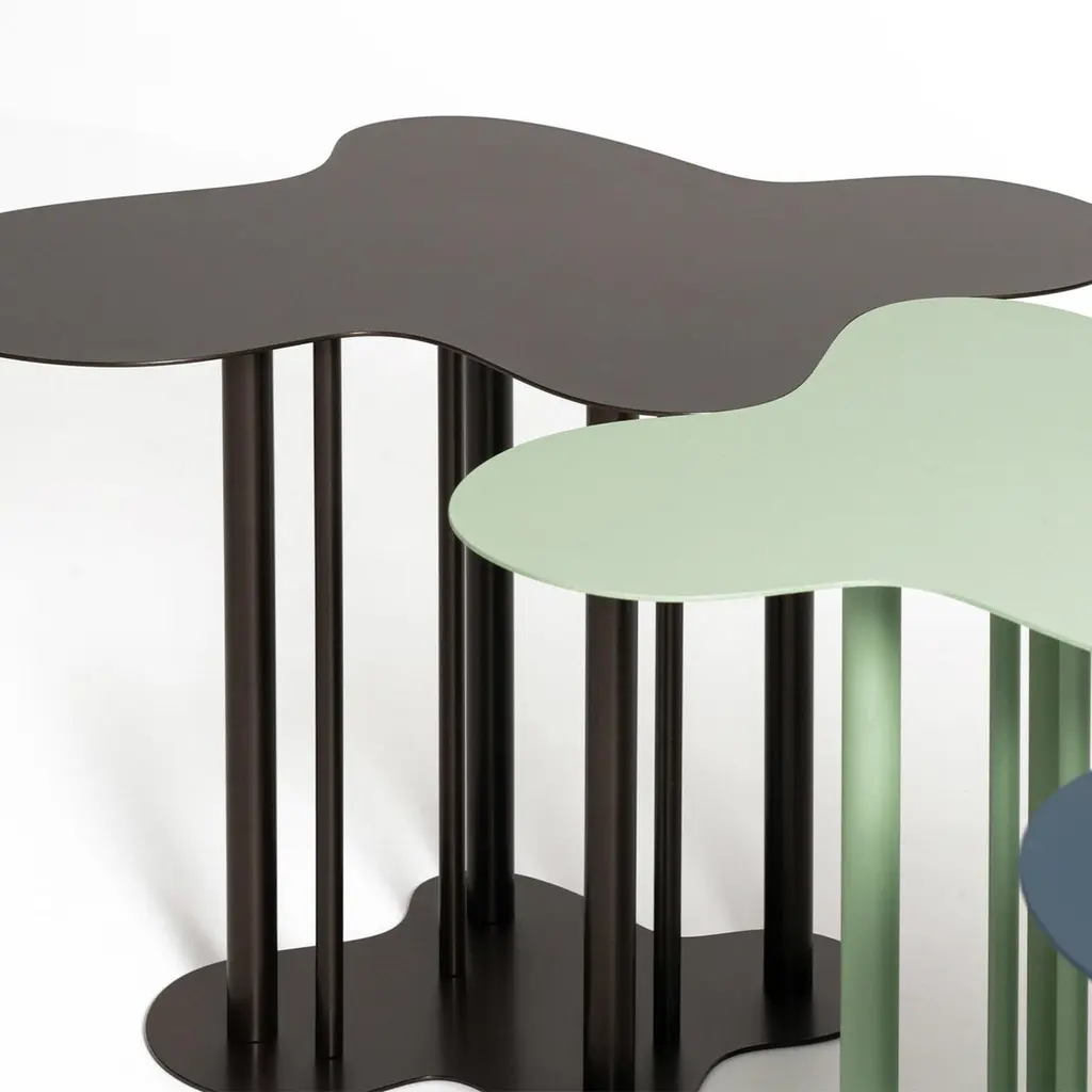 The Nuvola 03 side table with its sinuous curves presents itself as a unique and recognizable object, capable of characterizing the space. Made entirely of steel, it has a very thin upper top that joins the base through tubulars of different diameters. The pop colors give the object a young and dynamic cut that makes it ideal for both indoor and outdoor use. The product is completely demountable.