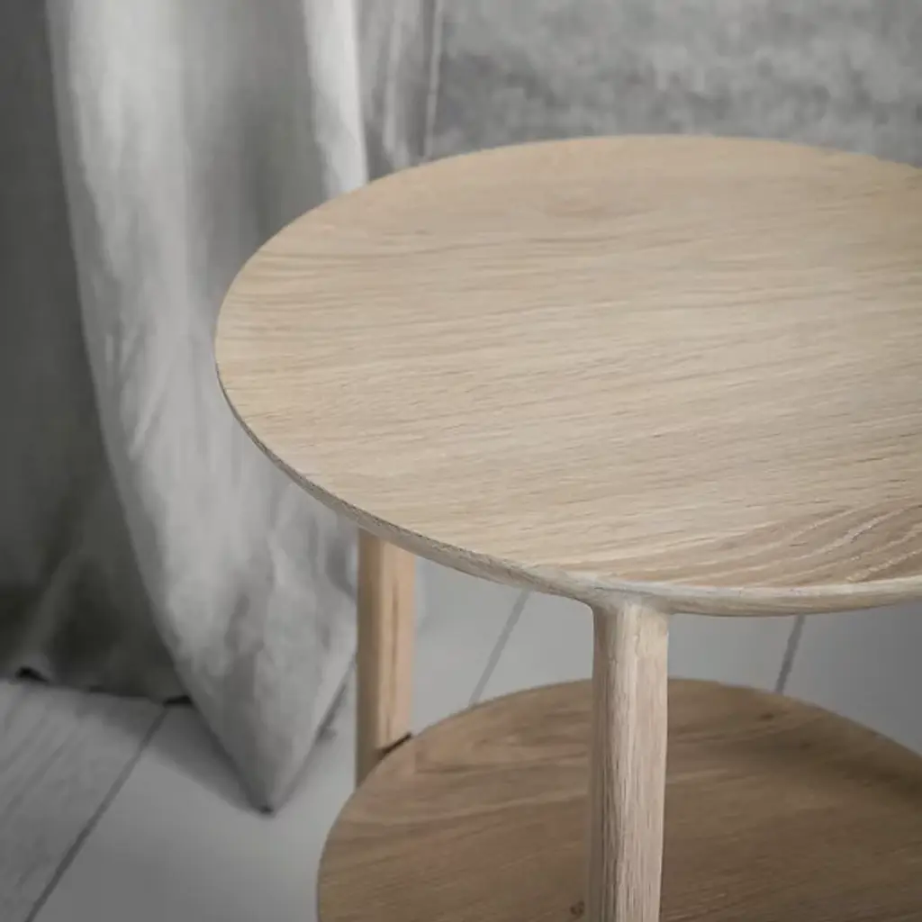 Lines of subtle shaping make the Oak Bok Side Table from Ethnicraft is a marvelous benchmark of modern carpentry. Designer Alain Van Havre has shaped a table, slender on its legs, which are subtle, curved, yet possess slight multifaceted edges. Its corners lift playfully upwards, as though the table is taking flight despite its sturdy build.