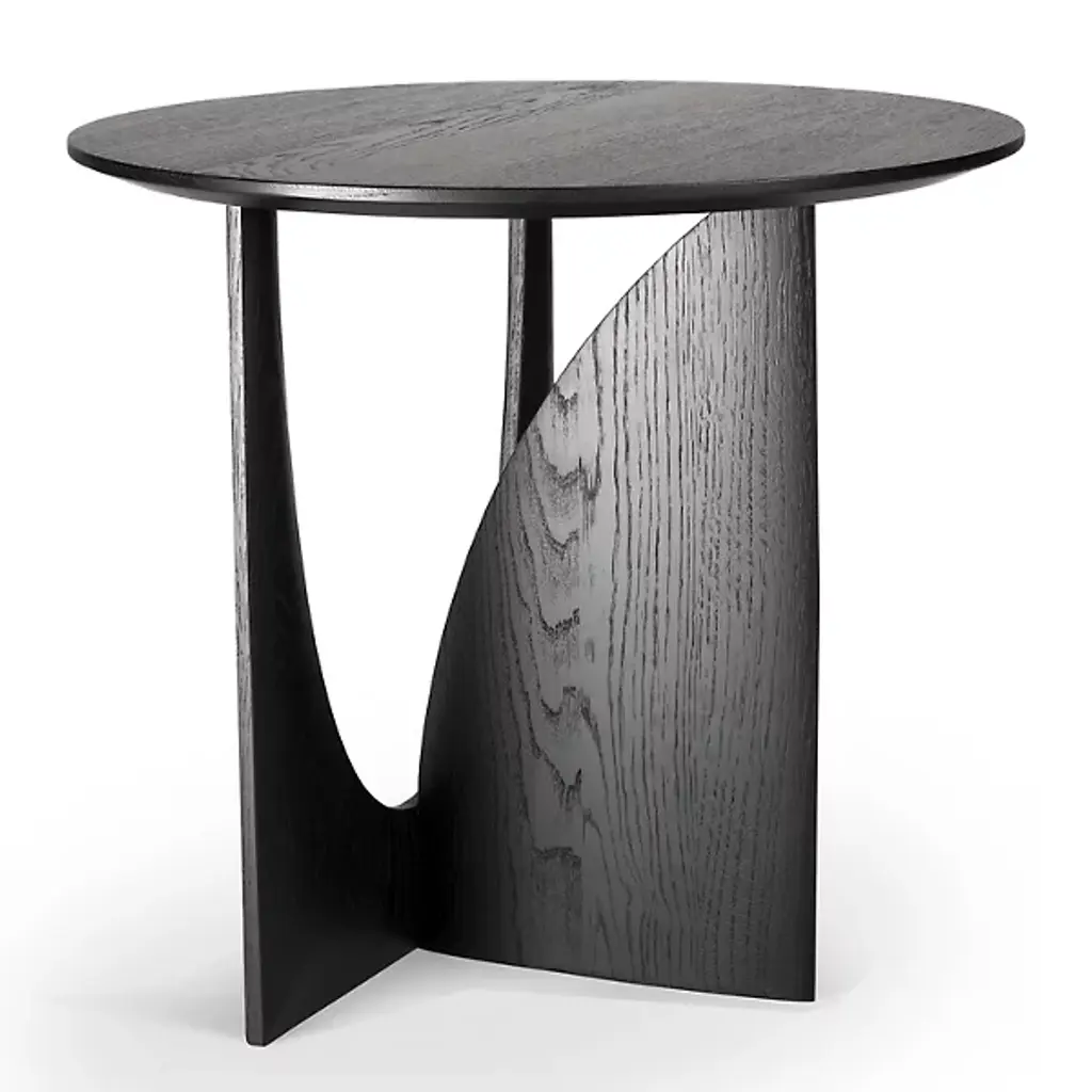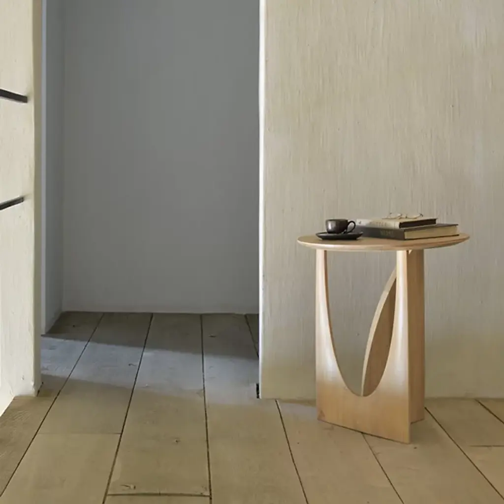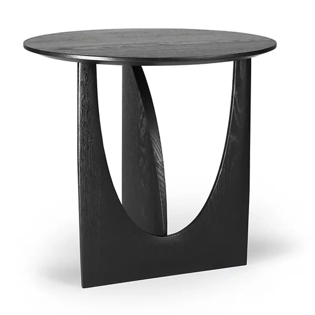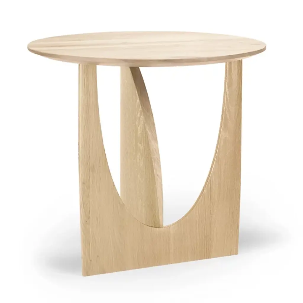 Introduce a stylish and natural addition to the décor of your home with the Oak Geometric Side Table from Ethnicraft. Made of solid oak wood, this piece consists of a pair of thick panels arranged perpendicularly to uphold a wide, round tabletop. The panels contain large, oval-shaped cutouts that set it apart from the other items in the home, while the size of the tabletop provides ample space for a variety of activities.