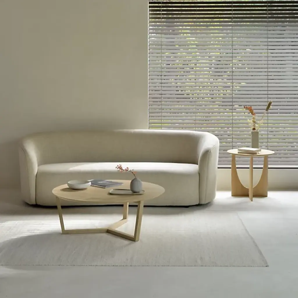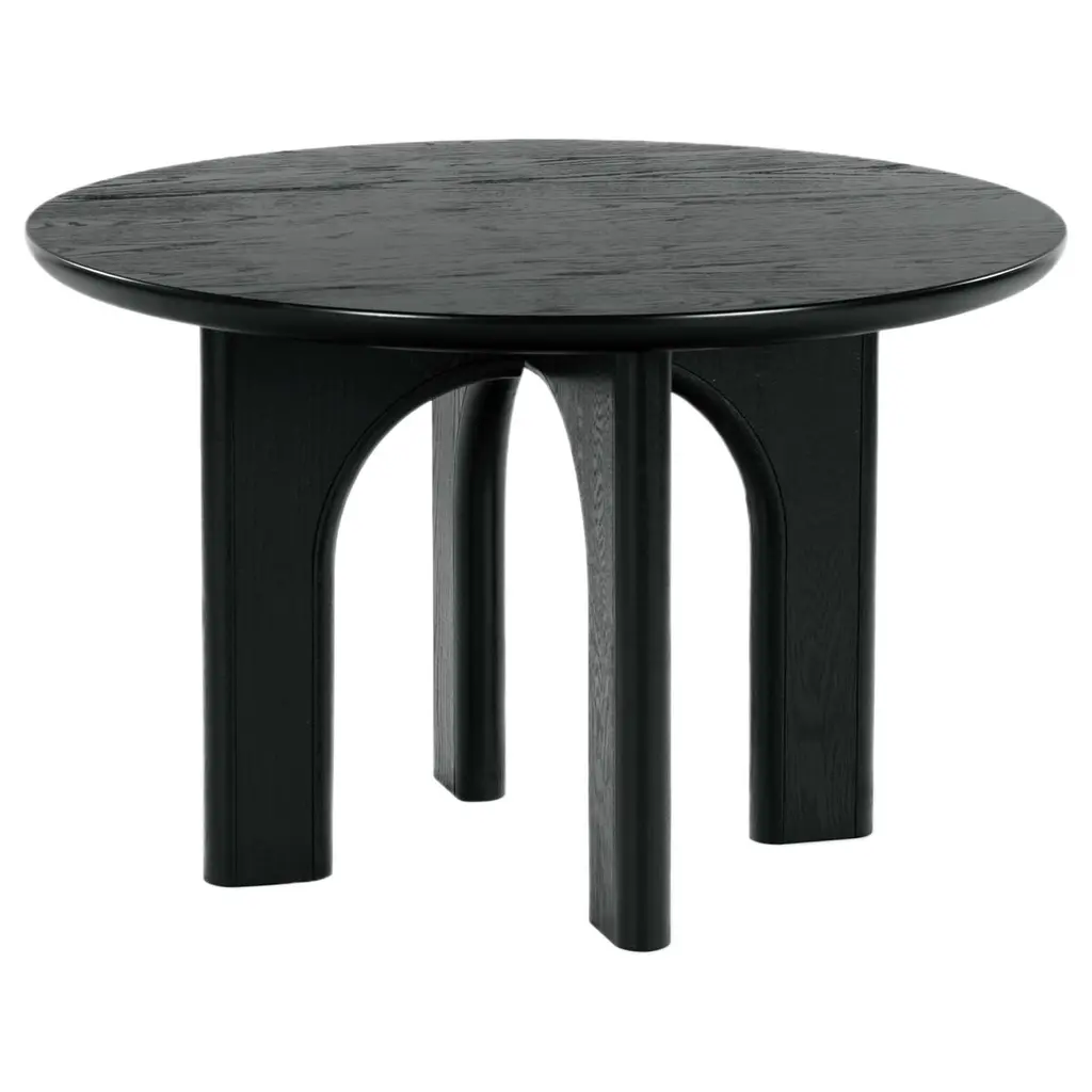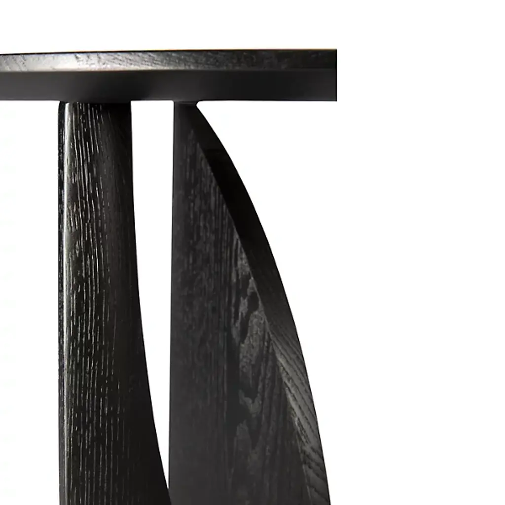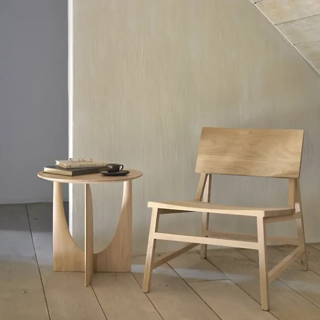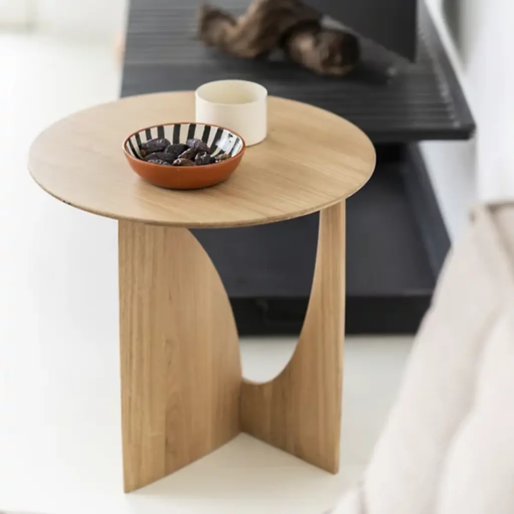 Introduce a stylish and natural addition to the décor of your home with the Oak Geometric Side Table from Ethnicraft. Made of solid oak wood, this piece consists of a pair of thick panels arranged perpendicularly to uphold a wide, round tabletop. The panels contain large, oval-shaped cutouts that set it apart from the other items in the home, while the size of the tabletop provides ample space for a variety of activities.