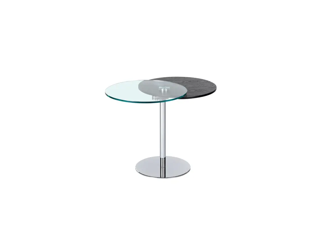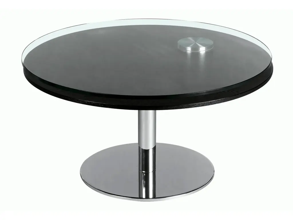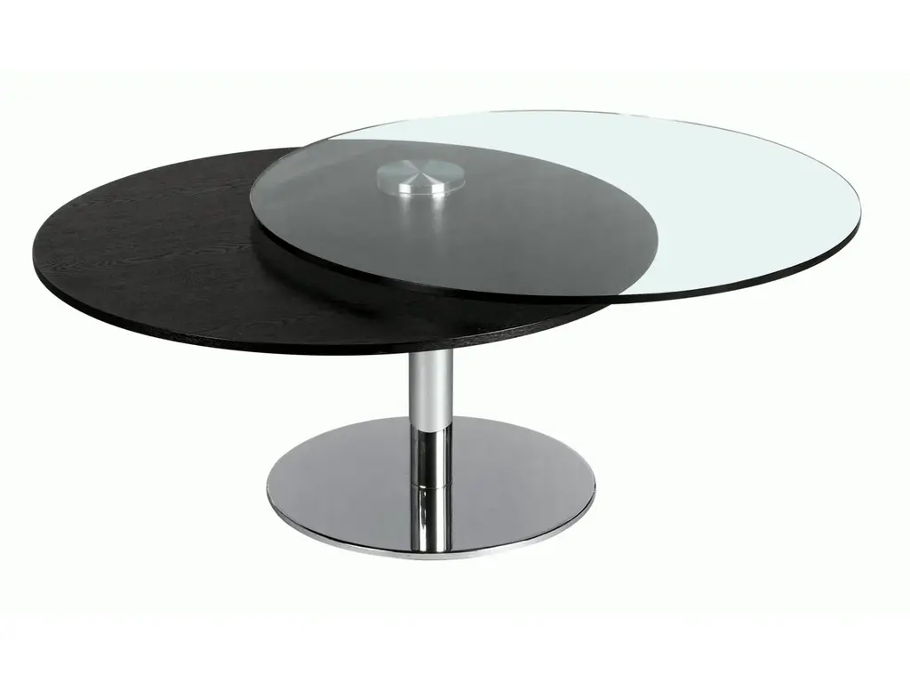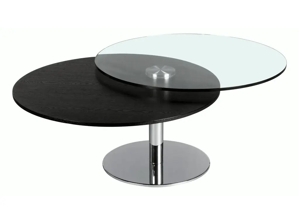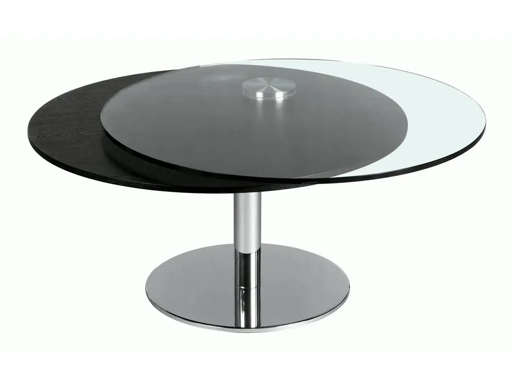 Contemporary Dual Round Top Motion Cocktail Table and side table w/ Glass & Solid Wood Top