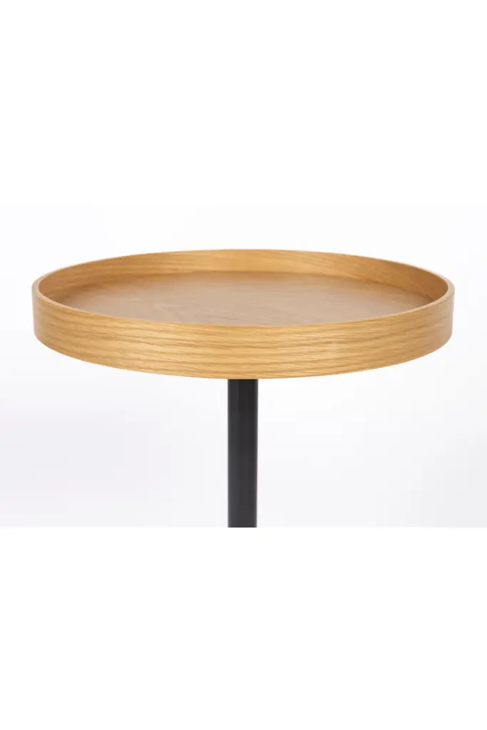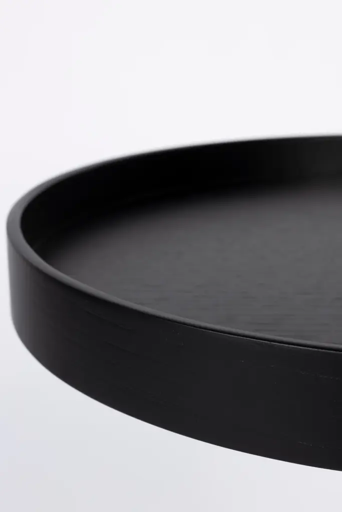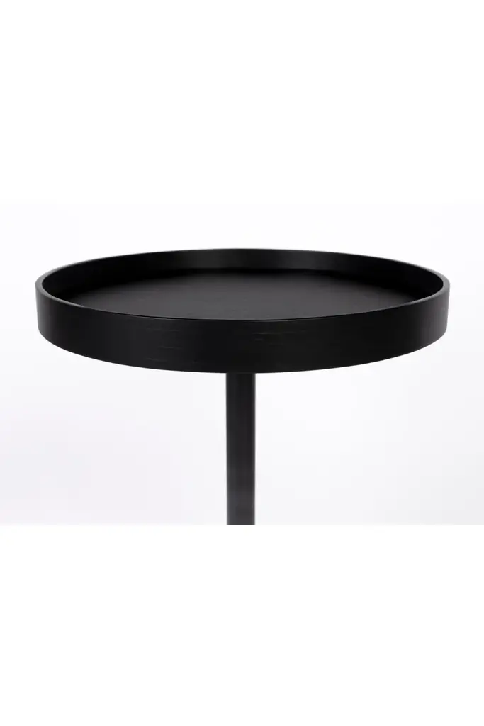 Offering both style and practicality, the DF Yuri Side Table is the perfect addition to a living space. ts black round wooden top, paired with a black metal pedestal base, provides a sturdy and modern design that enhances any decor. The tabletop boasts raised edges, ensuring that the items you place on it stay securely in place, preventing any unwanted spills or slipping.