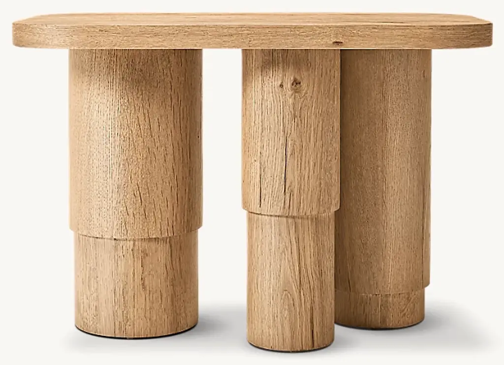 Handcrafted of American white oak with a distinctive knotted finish, the Tropez collection was inspired by a vintage table discovered in St. Tropez, France. The substantial, richly grained tabletop rests on asymmetric columns, each varying in dimension and stepped detail.SHOP THE ENTIRE COLLECTION