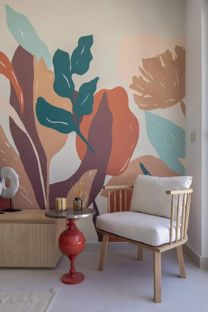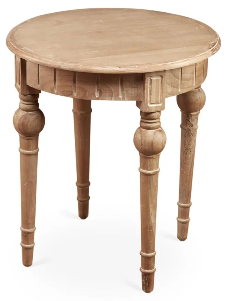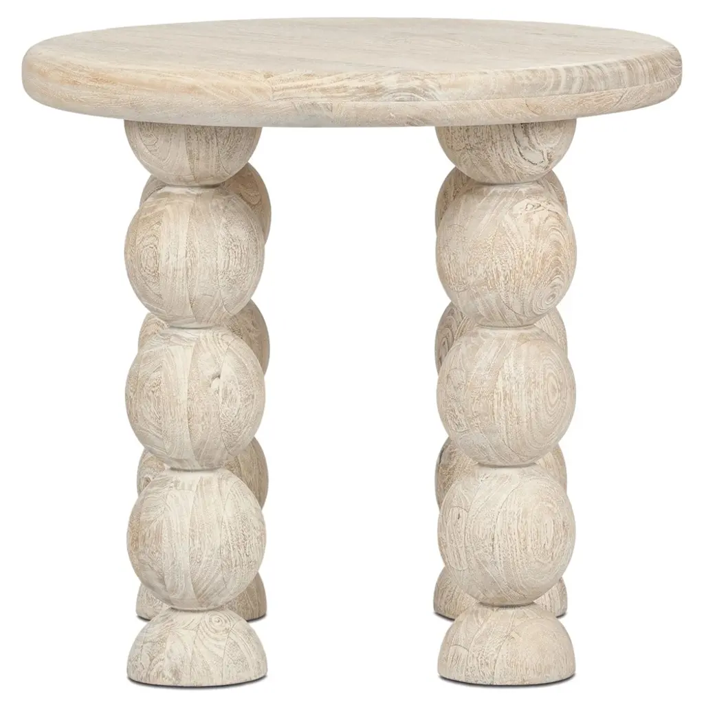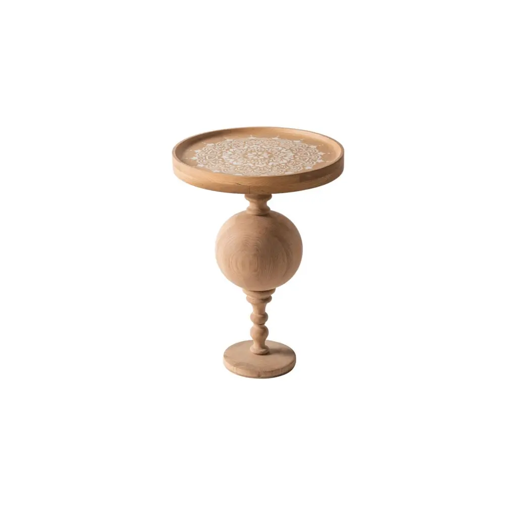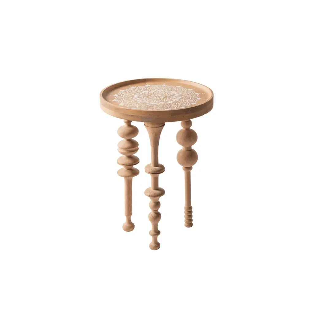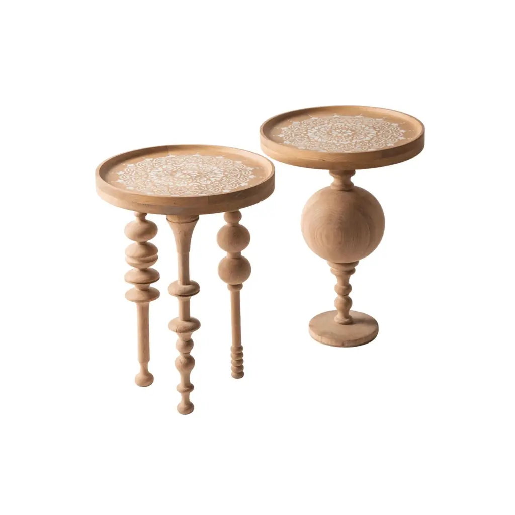 Oak Wood Side Table Set With Arabesque-Inspired Legs & Stenciled Mandala Motif