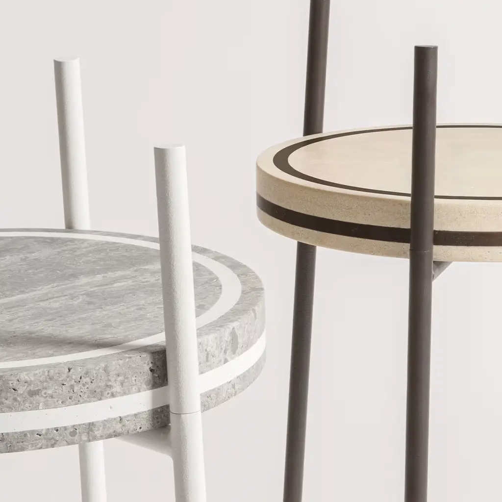 Merging form and function in a singular design of harmonious aesthetic balance, this exquisite side table will imbue contemporary interiors with timeless sophistication. Seamless and organic, it features slim metal legs seemingly defying gravity, lifting the round travertine top in suspension. Enriched with colored details, it is customizable in Travertine, as well as metal finishes of the frame. Please consult the Concierge for further details.