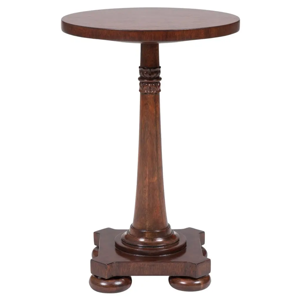The Occasional Flower Side table is the perfect antique reproduction mahogany pedestal to showcase your flowers or other collectibles. Features floral themed designs elegantly carved around the table.